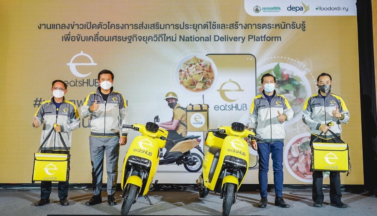 ดีป้า ร่วมกับ ฟู้ด ออเดอรี่ เปิดตัว eatsHUB แพลตฟอร์มเรียกรับส่งอาหารสัญชาติไทย ภายใต้โครงการ National Delivery Platform ปูพรมติดอาวุธผู้ประกอบการร้านอาหารขนาดกลาง ขนาดย่อม และรายย่อยในยุคดิจิทัล ช่วยลดต้นทุน เพิ่มยอดขาย ด้วยจุดเด่นเรื่องค่าส่วนแบ่งรายได้ที่ต่ำ ตั้งเป้ามีประชาชนลงทะเบียนเข้าใช้แพลตฟอร์มกว่า 500,000 ราย มีจำนวนการเข้าใช้งานมากกว่า 5,000,000 ครั้ง และช่วยสร้างมูลค่าทางเศรษฐกิจได้กว่า 500 ล้านบาทภายในปีแรกของการเปิดให้บริการ ดาวน์โหลดแอปพลิเคชัน eatsHUB ได้แล้ววันนี้ทั้งในระบบ android และ iOS