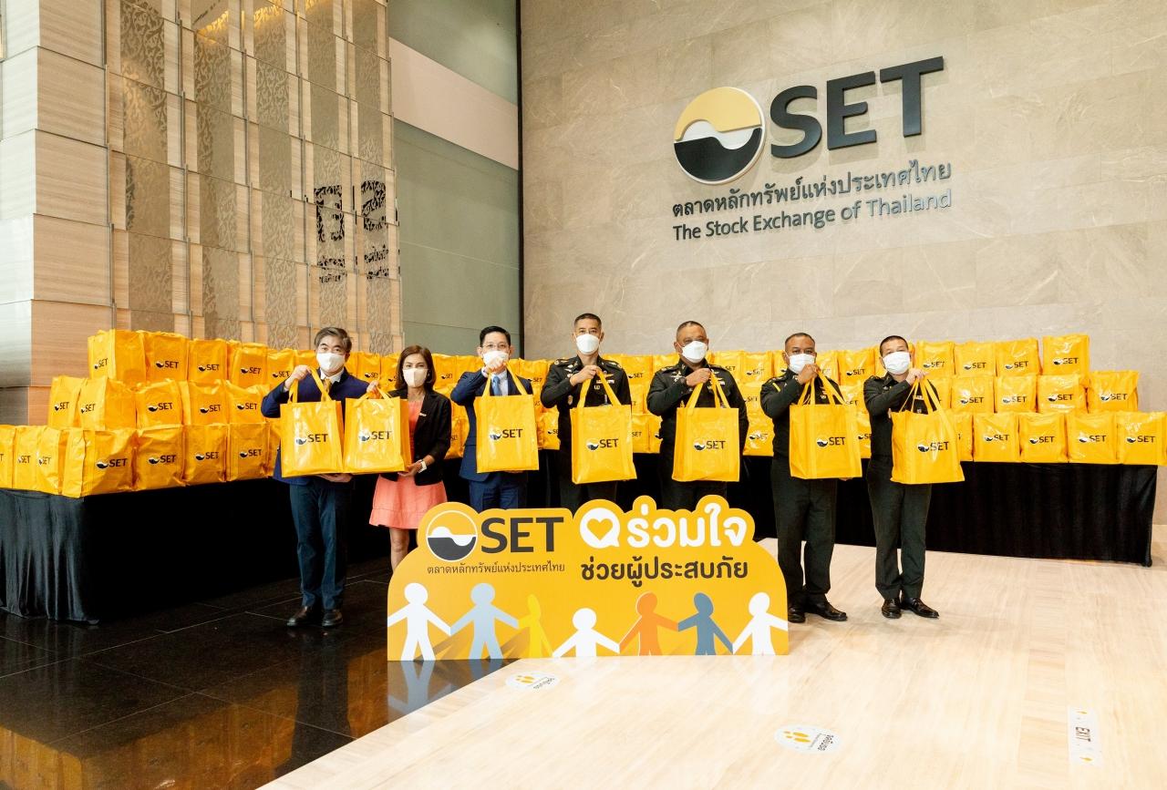 รองรักษ์ พนาปวุฒิกุล รองผู้จัดการ หัวหน้าสายงานกฎหมายและดูแลกลุ่มงานเลขานุการองค์กรและกำกับองค์กรรวมทั้งฝ่ายบริหารกิจกรรมเพื่อสังคม ร่วมด้วย เพทาย เพชรรัตน์ และกีรติ โกสีย์เจริญ ผู้ช่วยผู้จัดการ ตลาดหลักทรัพย์แห่งประเทศไทย เป็นตัวแทนผู้บริหารและพนักงานกลุ่มตลาดหลักทรัพย์ฯ มอบถุงยังชีพจำนวน 1,000 ถุง ในโครงการ SET ร่วมใจช่วยผู้ประสบภัย แก่กองบัญชาการกองทัพไทย โดยมีพลตรี กฤษณ์ จันทรนิยม รองเจ้ากรมกิจการพลเรือนทหาร เป็นผู้แทนรับมอบ