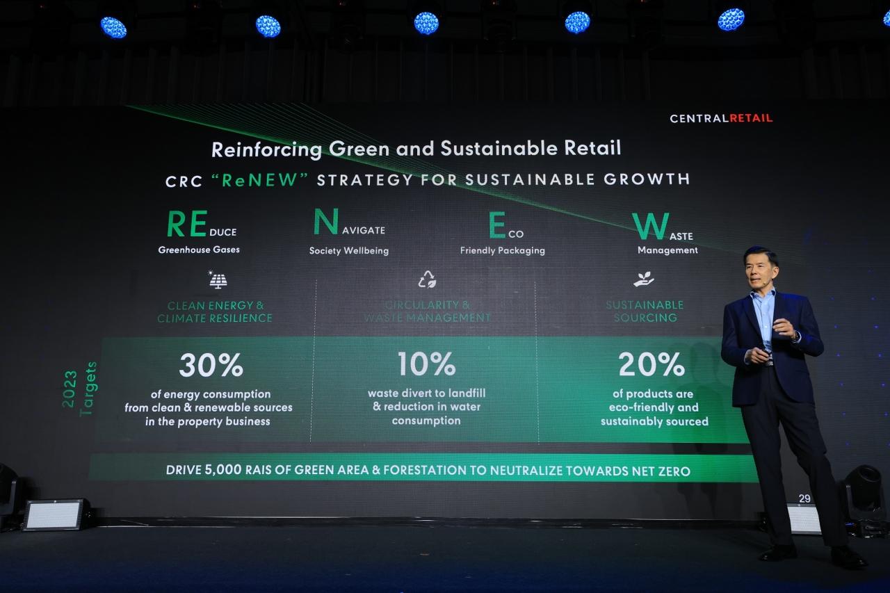 นายญนน์ กล่าวอีกว่า 4 กลยุทธ์ดังกล่าว จะทำให้เซ็นทรัล รีเทล เติบโตสู่ The Next Sustainable Growth และคาดว่าจะสร้างรายได้รวมในปี 2566 ราว 270,000 ล้านบาท เติบโตมากกว่า 15% เมื่อเทียบกับปีที่ผ่านมา โดยเราจะยังคงมุ่งมั่นพัฒนาธุรกิจให้เติบโตอย่างยั่งยืนต่อไป ตอกย้ำการเป็น Green & Sustainable Retail ผ่าน 4 กลยุทธ์ ReNEW โดยตั้งเป้าระยะสั้นในปี 2566 ที่จะนำพลังงานสะอาดและพลังงานหมุนเวียนมาใช้ในกลุ่มพร็อพเพอร์ตี้ให้ได้ 30%