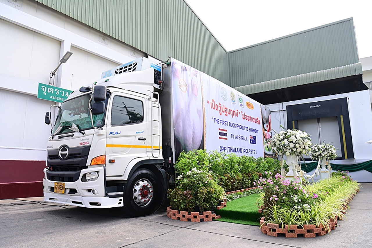 วันนี้ (12 มิถุนายน 2566) นายประยูร อินสกุล ปลัดกระทรวงเกษตรและสหกรณ์ น.สพ.สมชวน รัตนมังคลานนท์ อธิบดีกรมปศุสัตว์ และนายประสิทธิ์ บุญดวงประเสริฐ ประธานคณะผู้บริหาร ซีพีเอฟ ร่วมปล่อย “ตู้ปฐมฤกษ์เป็ดปรุงสุก” ออกจากโรงงานของซีพีเอฟ นับเป็นสินค้าเป็ดปรุงสุกที่ส่งออกไปออสเตรเลียลอตแรกในประวัติศาสตร์ของไทยและของโลก โดยมีผู้บริหารของกรมปศุสัตว์ และซีพีเอฟร่วมด้วย อาทิ น.สพ.โสภัชย์ ชวาลกุล รองอธิบดีกรมปศุสัตว์ นายเอกปิยะ เอื้อวุฒิเกริก ผู้อำนวยการใหญ่ ธุรกิจการค้าระหว่างประเทศ บริษัท ซีพีเอฟ โกลบอล ฟู้ด โซลูชั่น จำกัด (มหาชน) หรือ CPFGS ณ โรงงานแปรรูปไก่เนื้อ มีนบุรี 2