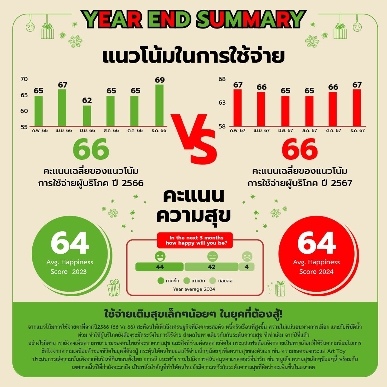 ถึงแม้ว่าภาพรวมในปีนี้ของคนไทยอาจจะยังมีความกังวลทางเศรษฐกิจ จากทั้งปัญหาสงคราม หรือน้ำท่วม จึงทำให้ค่าเฉลี่ยความต้องการในการใช้จ่ายของคนไทยตลอดปีนี้ยังอยู่ในระดับทรงๆ ที่ 66 คะแนน เท่ากันกับค่าเฉลี่ยในปีที่ผ่านมาก็ตาม