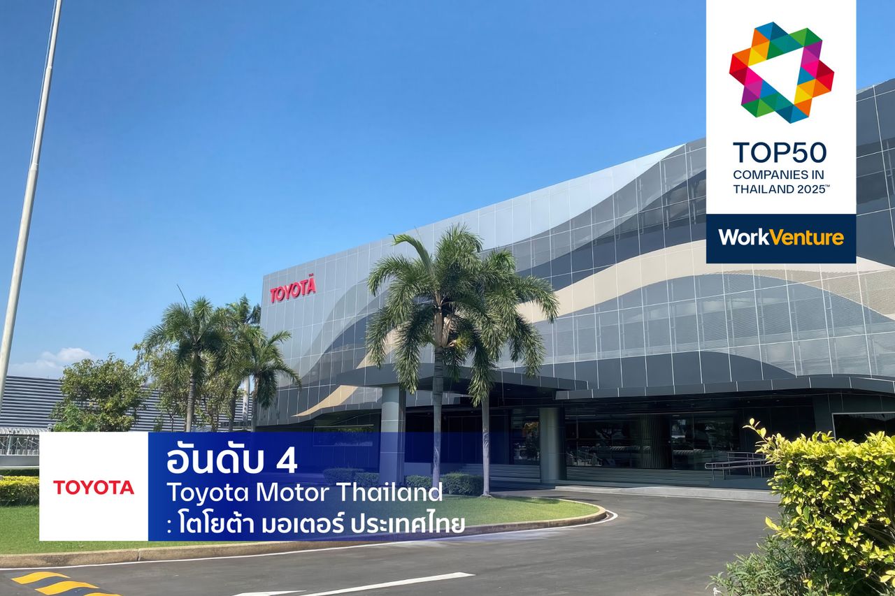 ไม่ใช่แค่ผู้นำในอุตสาหกรรมยานยนต์คู่ใจคนไทย แต่ยังเป็นตัวท็อปในใจคนทำงานรุ่นใหม่มาโดยตลอด อย่างโตโยต้า มอเตอร์ ประเทศไทยที่ติดโพล Top 10 ได้อย่างเหนียวแน่น และปีนี้ก้าวกระโดดขึ้นมาสู่อันดับที่ 4 ด้วยการให้ความสำคัญกับพนักงานทุกคน โดยเฉพาะเรื่องการพัฒนาศักยภาพ ที่ต่างได้รับโอกาสในการพัฒนาตัวเองอย่างต่อเนื่อง
