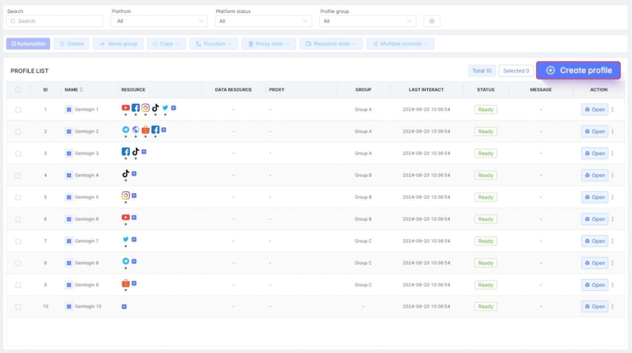 4. จัดการหลายบัญชีอย่างปลอดภัยบนหลากหลายโซเชียลมีเดียแพลตฟอร์ม ด้วยเทคโนโลยีของฟีเจอร์การป้องกันการตรวจจับของโปรแกรม Gemlogin และ Gemphonefarm จะสร้างลายนิ้วมือดิจิทัล ไม่ซ้ำกันในแต่ละโปรไฟล์ จึงช่วยลดความเสี่ยงที่จะถูกแบนจากระบบมากถึง 80%