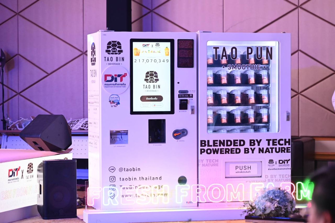 นายวิทยากร มณีเนตร อธิบดีกรมการค้าภายใน เปิดเผยว่า กรมได้ลงนามบันทึกข้อตกลงความร่วมมือ (MOU) กับบริษัท ฟอร์ท เวนดิ้ง จำกัด หรือเต่าบิน ในการรับซื้อผลไม้ และจำหน่ายเครื่องดื่มน้ำผลไม้ ผ่าน “ตู้เต่าปั่น” ซึ่งเป็นตู้จำหน่ายน้ำผลไม้อัตโนมัติปั่นสด ๆ หรือ สมูทที กว่า 7,500 ตู้ ทั่วประเทศ เพื่อเป็นทางเลือกใหม่ให้ประชาชนได้เข้าถึงสินค้าคุณภาพในราคาจับต้องได้