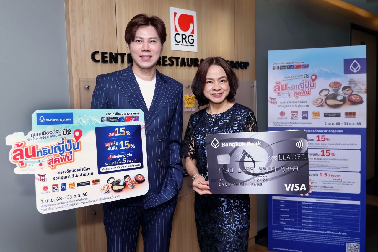 สุขกับมื้ออร่อย : นางวรนุช ศิรธรานนท์ เจ้าหน้าที่บริหารระดับ Senior Vice President ผู้จัดการฝ่ายการตลาดบัตรเครดิต ธนาคารกรุงเทพ จำกัด (มหาชน) ร่วมกับ นายธีรวัฒน์ เลิศถิรพันธุ์ ผู้ช่วยกรรมการผู้จัดการใหญ่อาวุโส กลุ่ม Asian Cuisine บริษัท เซ็นทรัล เรสตอรองส์ กรุ๊ป จำกัด หรือ CRG จัดแคมเปญ สุขกับมื้ออร่อย ที่ร้านอาหารญี่ปุ่นเครือซีอาร์จี ปี 2 อีกครั้ง กับความสุขสุดพิเศษ เอาใจชาว Japan lover ที่ถือบัตรเครดิตธนาคารกรุงเทพทุ่มหนักส่วนลด-เงินคืน 15% แถมรับสิทธิ์ลุ้นทริปญี่ปุ่นพร้อมรางวัลกว่า 1.5 ล้านบาท เริ่มแล้ววันนี้! ถึง 31 ก.ค. 68