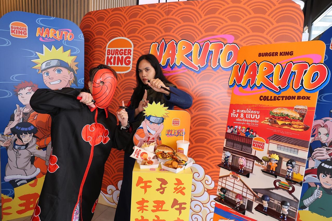 ขณะเดียวกัน เบอร์เกอร์คิงยังเดินหน้าแคมเปญการตลาดใหญ่ครั้งแรกในไทย ภายใต้ความร่วมมือ “BURGER KING x NARUTO” กับการ์ตูนอนิเมะระดับโลก “นารูโตะ” ผ่านเมนูพิเศษอย่าง “นารูโตะ วอปเปอร์” ทั้งขนาดปกติ จูเนียร์ และดับเบิล รวมถึงของหวานและเครื่องดื่มสีส้มสดใส ตามธีมตัวละคร พร้อมเปิดตัวฟิกเกอร์ลิขสิทธิ์แท้จำนวนจำกัด เพียง 5,000 ชิ้นต่อคาแรกเตอร์ และ Toy Set สุดเอ็กซ์คลูซีฟ 2,000 ชุด เจาะกลุ่มนักสะสม คอมมูนิตี้คนรักอนิเมะ และกลุ่ม Gen Y–Z