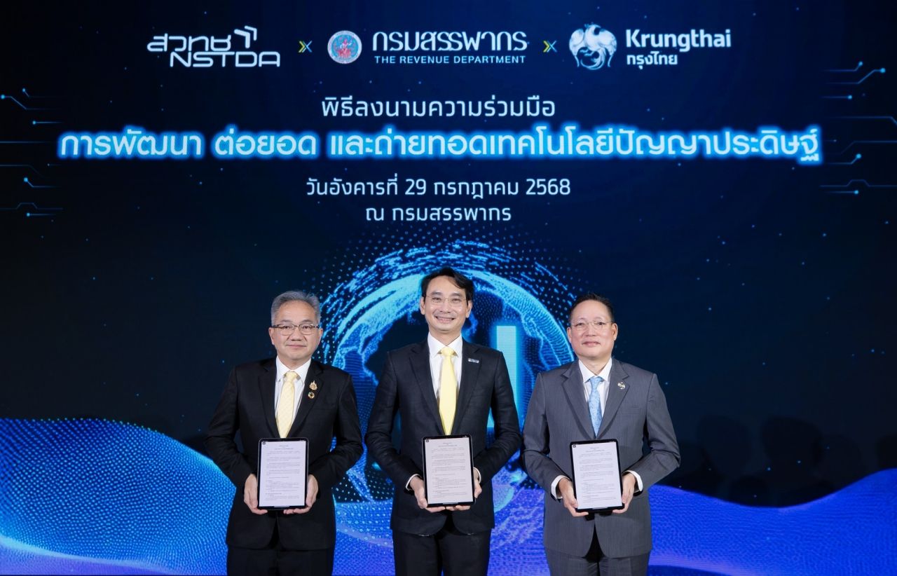 พัฒนาเทคโนโลยี AI : กรมสรรพากรร่วมกับสำนักงานพัฒนาวิทยาศาสตร์และเทคโนโลยีแห่งชาติ และธนาคารกรุงไทย จํากัด (มหาชน) เข้าร่วมพิธีลงนามบันทึกข้อตกลงความร่วมมือ ด้านการพัฒนา ต่อยอด และถ่ายทอดเทคโนโลยีปัญญาประดิษฐ์ ณ อาคารกรมสรรพากร ซอยพหลโยธิน 7 เพื่อพัฒนาเทคโนโลยี AI ให้สอดคล้องกับยุทธศาสตร์ชาติ สนับสนุนการให้บริการประชาชน และเพิ่มประสิทธิภาพภาครัฐ