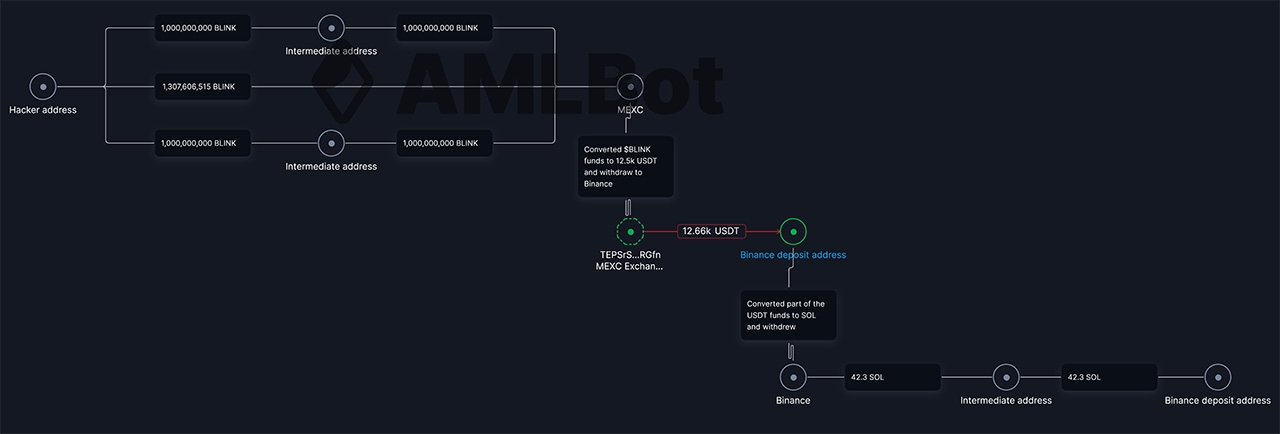 เงินจำนวนดังกล่าวถูกถอนออกผ่านการโจมตีที่วางแผนมาอย่างเป็นระบบ โดยใช้สัญญาอัจฉริยะ (Smart Contract) ซึ่งมีเป้าหมายคือแพลตฟอร์ม Blink Game AI ผู้ก่อเหตุได้แปลงทรัพย์สินที่ได้จากการโจรกรรมเป็นสกุลเงินดิจิทัล และพยายามฟอกเงินผ่านแพลตฟอร์มแลกเปลี่ยนในต่างประเทศ อย่างไรก็ตาม เจ้าหน้าที่สืบสวนของ AMLBot Thailand สามารถระบุกระเป๋าเงินที่ใช้ทำธุรกรรมบนแพลตฟอร์มแลกเปลี่ยนดังกล่าวได้ และได้ดำเนินการอายัดธุรกรรมฉุกเฉินทันที หลังได้รับการแจ้งเตือนเกี่ยวกับเหตุละเมิดภายใน 45 นาที