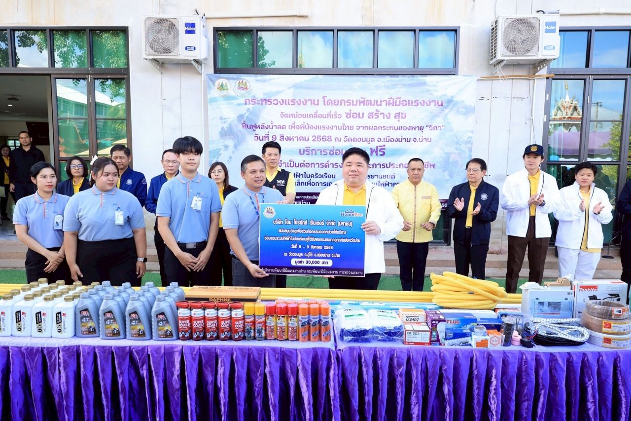 ช่วยฟื้นฟู : โฮมโปร และ เมกาโฮม สานต่อภารกิจส่งความห่วงใย ร่วมใจฟื้นฟูบ้าน ร่วมกับกระทรวงแรงงาน และกรมพัฒนาฝีมือแรงงาน ลงพื้นที่ช่วยเหลือผู้ที่ได้รับผลกระทบจากภัยพิบัติน้ำท่วมในจังหวัดน่าน ส่งทีม CHANG HomePro - มือโปรประจำบ้านคุณ พร้อมอุปกรณ์และเครื่องมือเข้าซ่อมแซมเครื่องใช้ไฟฟ้าและระบบไฟฟ้า ภายในที่อยู่อาศัยกว่า 100 หลังคาเรือน เพื่อให้ประชาชนกลับมาใช้ชีวิตในบ้านได้อย่างปลอดภัยโดยเร็ว