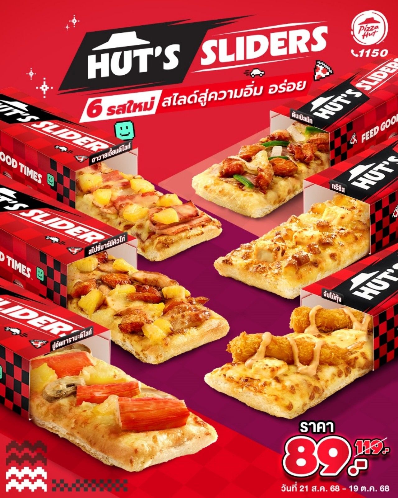 พิซซ่า ฮัท เปิดตัว Hut’s Slider : พิซซ่า ฮัท 1150 ภายใต้การบริหารของบริษัท พีเอช แคปปิตอล จำกัด ตอกย้ำความเป็นผู้นำด้านนวัตกรรมอาหารในธุรกิจ QSR (Quick Service Restaurant) ด้วยการเปิดตัวเมนูใหม่ล่าสุด Hut’s Slider พิซซ่าในฟอร์แมตใหม่ที่มาพร้อมกล่องสไลด์ดีไซน์เฉพาะ สะดวกต่อการพกพาและรับประทานง่ายๆ แค่สไลด์กล่องออก ตอบโจทย์ไลฟ์สไตล์คนรุ่นใหม่ที่ต้องการความอร่อยแบบ Grab & Go อิ่มครบจบในหนึ่งกล่อง ให้ทุกวันเร่งรีบกลายเป็นช่วงเวลาแห่งความอร่อย ลงตัวทั้งรสชาติและความสะดวกสบาย ในราคาเพียง 89 บาท ตั้งแต่วันที่ 21 สิงหาคม – 19 ตุลาคม 2568