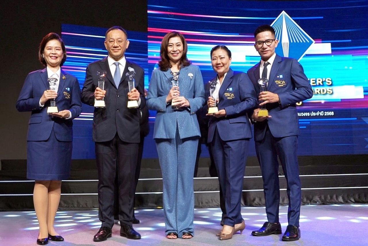 รับรางวัลใหญ่ : นายพิชัย ชุณหวชิร รองนายกรัฐมนตรีและรัฐมนตรีว่าการกระทรวงการคลัง เป็นประธานในการมอบรางวัลตัวแทนประกันชีวิตคุณภาพดีเด่น ประจำปี 2567 ให้แก่ผู้บริหารฝ่ายขาย บริษัท ไทยประกันชีวิต จำกัด (มหาชน) ได้แก่ นายทศพร อินคล้า ผู้บริหารศูนย์ สาขานครปฐม นางสาวสมจิตต์ งามนิธิพร ผู้บริหารศูนย์ สาขาอโศก และ นางสาวธัญณลัคน์ วรินทร์พงศ์ ผู้บริหารหน่วย สาขาบางนา ในพิธีมอบรางวัลประกันภัยดีเด่นครบวงจร (Prime Minister’s Insurance Awards)