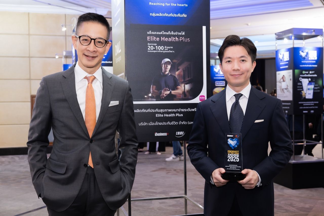 รับรางวัลใหญ่ : นายสาระ ล่ำซำ ประธานเจ้าหน้าที่บริหาร บริษัท เมืองไทยประกันชีวิต จำกัด (มหาชน) ขึ้นรับรางวัลสุดยอดผลิตภัณฑ์แห่งปีประเภทผลิตภัณฑ์ประกันสุขภาพเหมาจ่ายระดับพรีเมี่ยม จากผลิตภัณฑ์ความคุ้มครองสุขภาพ อีลิท เฮลท์ พลัส ต่อเนื่องเป็นปีที่ 6 จากงาน BUSINESS+ PRODUCT OF THE YEAR AWARDS 2025 จัดโดย นิตยสาร Business+ ในเครือ บริษัท เออาร์ไอพี จำกัด (มหาชน) ร่วมกับ วิทยาลัยการจัดการ มหาวิทยาลัยมหิดล (CMMU) โดยมี ฯพณฯ นุรักษ์ มาประณีต องคมนตรี ประธานในพิธีเป็นผู้มอบรางวัล งานจัดขึ้น ณ ห้องบอลรูม โรงแรมสวิสโฮเต็ล กรุงเทพฯ รัชดา