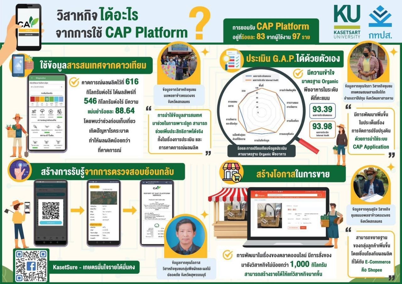 รวมถึงการถ่ายทอดเทคโนโลยีและจัดทำสื่อการเรียนรู้ที่มีประสิทธิผล ซึ่ง CAP Platform ได้รับการพัฒนาให้รองรับการใช้งานบน SMART Device ได้สร้างกลไกขับเคลื่อนวิสาหกิจชุมชนอย่างครบวงจร ทั้งต้นน้ำ กลางน้ำ และปลายน้ำ