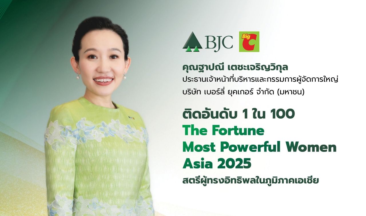 ผู้นำหญิงผู้ทรงอิทธิพล : นางฐาปณี เตชะเจริญวิกุล ประธานเจ้าหน้าที่บริหารและกรรมการผู้จัดการใหญ่ บริษัท เบอร์ลี่ ยุคเกอร์ จำกัด (มหาชน) หรือ บีเจซี ผู้นำธุรกิจสินค้าอุปโภคบริโภคครบวงจรของไทย ได้รับการจัดอันดับให้เป็นหนึ่งใน The Fortune Most Powerful Women Asia 2025 หรือ ผู้นำหญิงผู้ทรงอิทธิพลแห่งภูมิภาคเอเชีย จาก นิตยสารฟอร์จูน (Fortune) สื่อธุรกิจชั้นนำระดับโลก