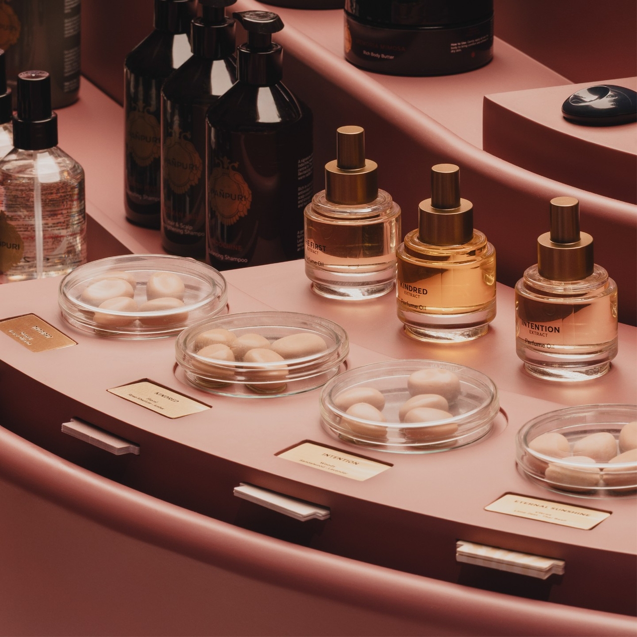 นอกจากการออกแบบ และทุกรายละเอียดที่ถูกเลือกเฟ้นอย่างบรรจง PAÑPURI Sensorial Boutique สิงคโปร์ยังรวบรวมผลิตภัณฑ์ไว้อย่างครบครันให้เลือกสรร พร้อมมี The Harmonists ที่คอยมอบคำแนะนำด้านกลิ่นหอมของปัญญ์ปุริ เพื่อเชื่อมโยงระหว่างกลิ่น อารมณ์ และความทรงจำผ่านผลิตภัณฑ์แต่ละชิ้น