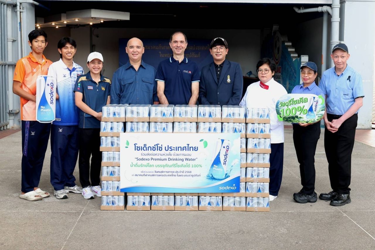 สนับสนุนสมาคมกีฬาคนพิการฯ : โซเด็กซ์โซ่ ประเทศไทย ผู้นำระดับโลกด้านบริการอาหารที่ยั่งยืนและการมอบประสบการณ์ที่มีคุณค่าในทุกช่วงเวลาของชีวิตจากประเทศฝรั่งเศส นำโดย คุณอาร์โนด์ เบียเลคกิ กรรมการผู้จัดการ ประจำภูมิภาคเอเชียตะวันออกเฉียงใต้ พร้อมทีมผู้บริหารและพนักงานโซเด็กซ์โซ่ผู้ที่มีความบกพร่องทางร่างกาย ร่วมเป็นตัวแทนส่งมอบน้ำดื่มพรีเมียมในบรรจุภัณฑ์กระป๋องอลูมิเนียมรีไซเคิล 100% จำนวน 1,200 กระป๋อง แก่สมาคมกีฬาคนพิการแห่งประเทศไทย ในพระบรมราชูปถัมภ์