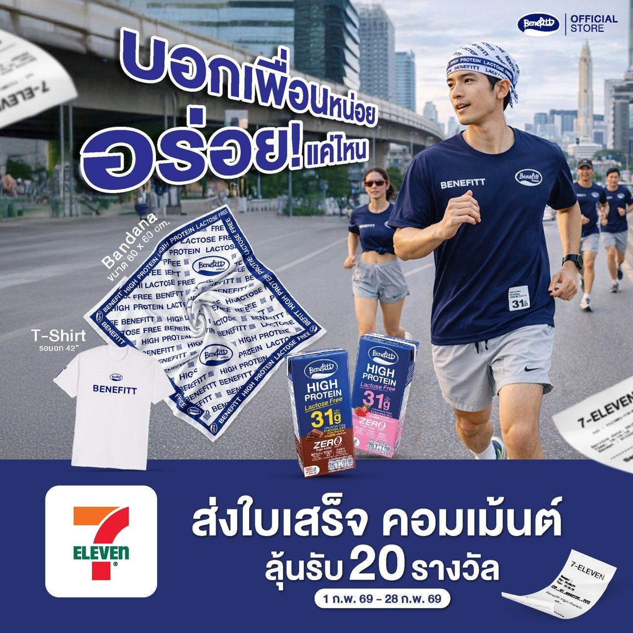 โปรตีนสูง : เบนิฟิตต์ ไฮโปรตีน แลคโตสฟรี นมยูเอชทีโปรตีนสูง ประโยชน์เต็ม ๆ ปราศจากน้ำตาลแลคโตส ไม่เติมน้ำตาลทราย ชวนทุกคนมาเติมโปรตีนพร้อมความสนุกกับกิจกรรมลุ้นของรางวัลไปพร้อมกัน เพียงซื้อเบนิฟิตต์ ไฮโปรตีน ขนาด 350 มิลลิลิตร จำนวน 2 กล่องจาก 7-Eleven ทุกสาขา เขียนชื่อ-นามสกุลลงบนใบเสร็จให้ชัดเจน แล้วถ่ายภาพใบเสร็จให้เห็นรายการสินค้าที่ซื้อ