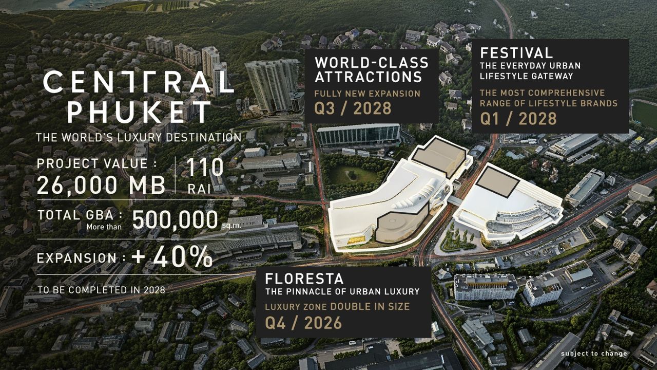 ตลอดกว่า 20 ปีที่ผ่านมา กลุ่มเซ็นทรัลลงทุนในภูเก็ตแล้วมากกว่า 140 โครงการ ถือเป็นจังหวัดที่มีการลงทุนสูงเป็นอันดับสองรองจากกรุงเทพฯ การขยายเซ็นทรัล ภูเก็ต ในครั้งนี้จึงไม่ใช่เพียงการเพิ่มพื้นที่ศูนย์การค้า แต่เป็นการวางเดิมพันระยะยาวต่ออนาคตของภูเก็ต ในฐานะเมืองเศรษฐกิจชายทะเลที่ต้องแข่งขันกับจุดหมายปลายทางระดับโลก และหากแผนนี้สำเร็จ ภูเก็ตอาจไม่ได้เป็นเพียงเมืองท่องเที่ยวอีกต่อไป แต่จะกลายเป็นเมืองที่คนระดับโลกเลือกเข้ามาใช้ชีวิตอย่างแท้จริง