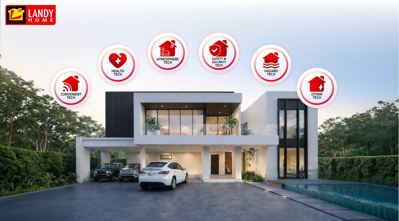 Safety & Security Tech : ระบบความปลอดภัยที่ออกแบบเพื่อให้ผู้อยู่อาศัยมั่นใจได้ในทุกช่วงวัย โดยเน้นทั้งความปลอดภัยเชิงป้องกันและการออกแบบที่ลดความเสี่ยงในชีวิตประจำวัน ครอบคลุมตั้งแต่ Digital Door Lock ที่ช่วยเพิ่มความสะดวกและความปลอดภัยในการเข้า–ออกบ้าน ไปจนถึงแนวคิด Landy Elder Care Solution