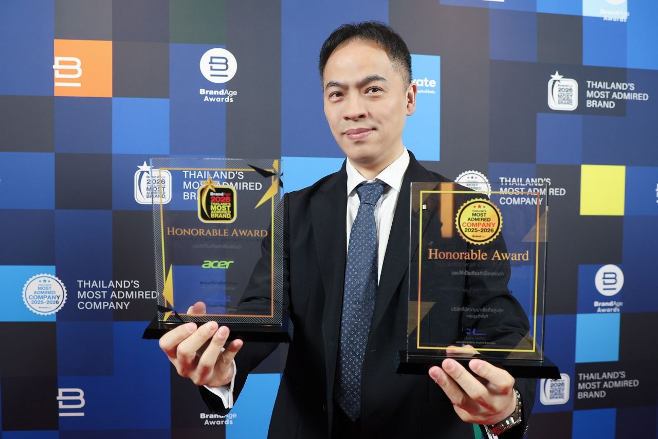 คว้ารางวัลใหญ่ : บริษัท เอเซอร์ คอมพิวเตอร์ (ประเทศไทย) จำกัด ตอกย้ำความแข็งแกร่งทั้งในระดับองค์กรและแบรนด์ ด้วยการคว้า 2 รางวัลสำคัญจาก BrandAge ได้แก่ รางวัล 2025–2026 Thailand’s Most Admired Company ต่อเนื่องเป็นครั้งที่ 7 และรางวัล 2026 Thailand’s Most Admired Brand หมวด IT และดิจิทัล กลุ่มคอมพิวเตอร์พกพา ต่อเนื่องเป็นครั้งที่ 16 จากผลสำรวจความคิดเห็นผู้บริโภคทั่วประเทศ