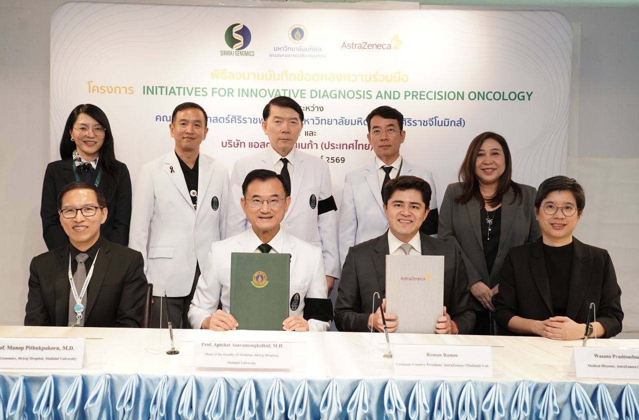 เพื่อความแม่นยำ : บริษัท แอสตร้าเซนเนก้า (ประเทศไทย) จำกัด ลงนามบันทึกข้อตกลงความร่วมมือ (MoU) กับศูนย์จีโนมิกส์ศิริราช คณะแพทยศาสตร์ศิริราชพยาบาล มหาวิทยาลัยมหิดล เพื่อส่งเสริมและยกระดับการวินิจฉัยขั้นสูงและการแพทย์แม่นยำด้านโรคมะเร็ง (Precision Oncology) โดยมุ่งเน้นนำองค์ความรู้ด้านจีโนมิกส์และนวัตกรรมทางการแพทย์ไปขยายโอกาสในการเข้าถึงการรักษาของผู้ป่วยโรคมะเร็งในระบบบริการสุขภาพอย่างเป็นรูปธรรม