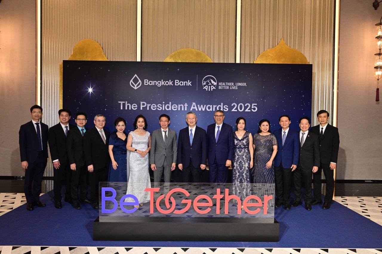 เปล่งประกายความสำเร็จ: ธนาคารกรุงเทพ ร่วมกับเอไอเอ ประเทศไทย มอบรางวัลทรงคุณค่า ‘The President Award 2025’ ครั้งที่ 5 เพื่อฉลองความสำเร็จให้กับทีมงานนักขายของธนาคารที่มีผลงานขายประกันชีวิตดีเด่น ประจำปี 2568รวมทั้งสิ้น 180 รางวัล เมื่อวันที่ 21 มีนาคม 2569 ณ ห้องแกรนด์บอลรูม 2 โรงแรมเดอะ ริทซ์-คาลตัน กรุงเทพ