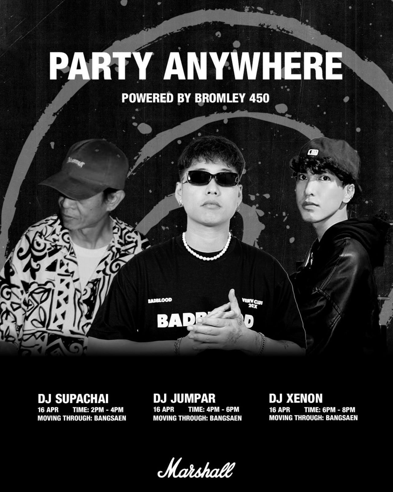 กลายเป็นปาร์ตี้กับ Wall of Bromley ที่อัดแน่นด้วย Bromley 450 ถึง 37 ตัว ให้เสียงกระหึ่ม แบบ Non-Stop พร้อมกับทัพดีเจชั้นนำที่จะสร้างความสนุกแบบไร้ขีดจำกัด บนเส้นทางความมันส์ของ Marshall Party Truck โดยเริ่มตั้งแต่