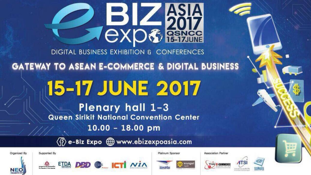 ในงาน e-Biz Expo Asia 2017 ครั้งที่ 3 “GATEWAY TO ASEAN E-COMMERCE DIGITAL BUSINESS” ระหว่างวันที่ 15-17 มิ.ย.นี้ ที่ศูนย์การประชุมแห่งชาติสิริกิติ์ ผู้ที่ลงทะเบียนร่วมงานล่วงหน้า ระหว่างวันที่ 12-14 มิถุนายน 2560 จะได้รับคูปองส่วนลด Promt Post 100 บาท จำนวน 2 ใบ และกล่องพร้อมส่งไซส์ s 2 ใบ ส่วนผู้ลงทะเบียนในวันงานจะได้รับคูปองส่วนลด 1 ใบ