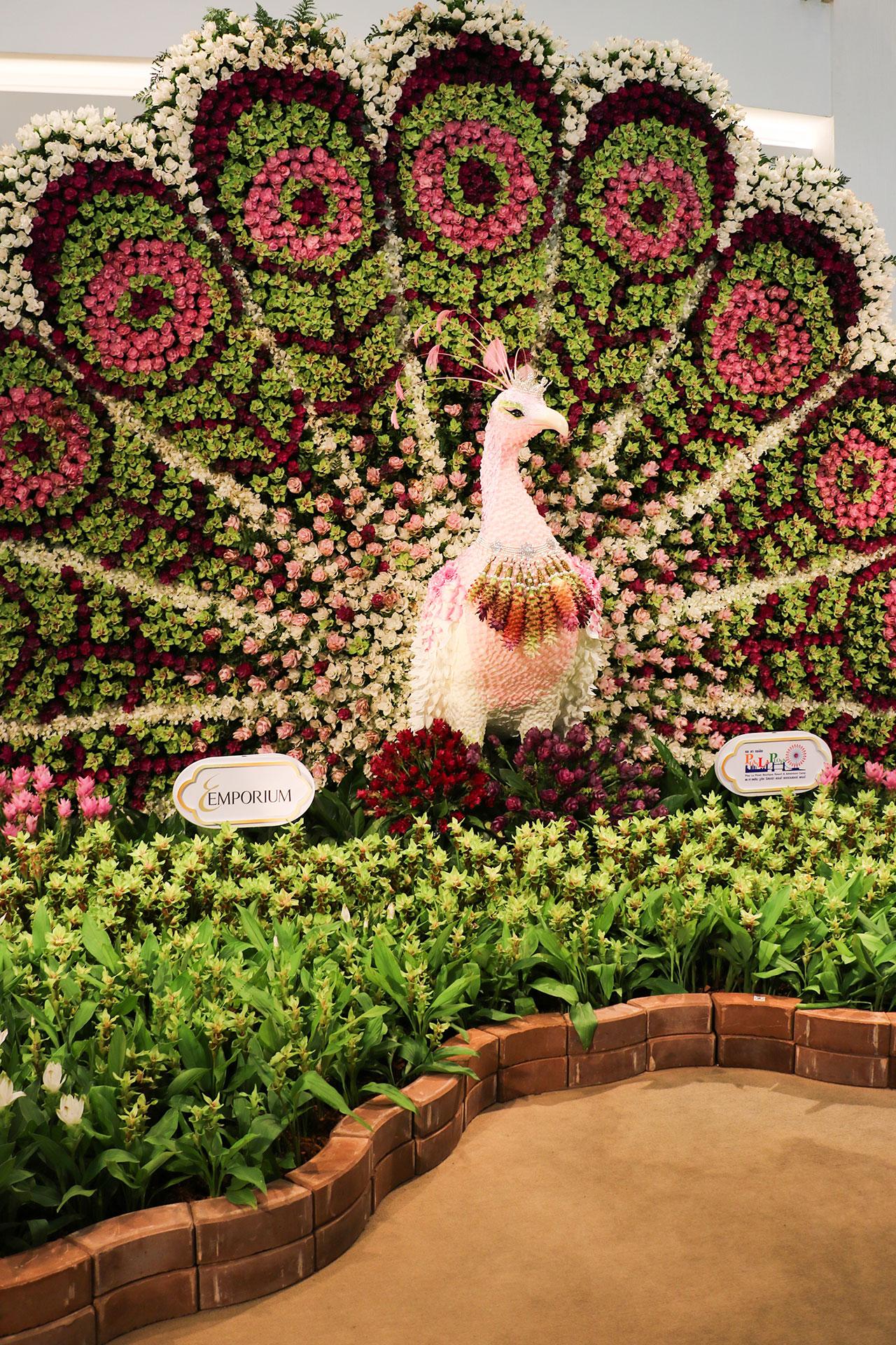 ทั้งนี้ ภายในงานประกอบไปด้วยการจัดแสดงงานประติมากรรมนกยูงอันวิจิตรตระการตาจากกระเจียวและพันธุ์ไม้อื่นๆ กว่า 200,000 ดอก พบกระเจียวชุด Royal Thai จำนวน 9 สายพันธุ์ ที่ได้มาจากการวิจัยขึ้นใหม่เนื่องในโอกาสที่พระบาทสมเด็จพระเจ้าอยู่หัว รัชกาลที่ 9 ทรงครองราชย์ครบ 60 ปี มาจัดแสดงให้ประชาชนทั่วไปได้ชมอย่างใกล้ชิดเป็นครั้งแรก ระหว่างวันที่ 9-14 สิงหาคม 2590 ณ ศูนย์การค้า ดิเอ็มโพเรียม สุขุมวิท