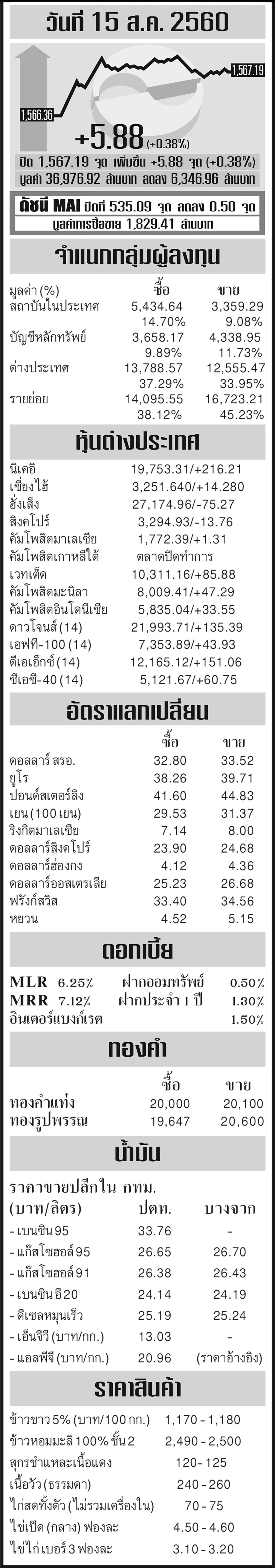 ดัชนีเศรษฐกิจ 16/08/60