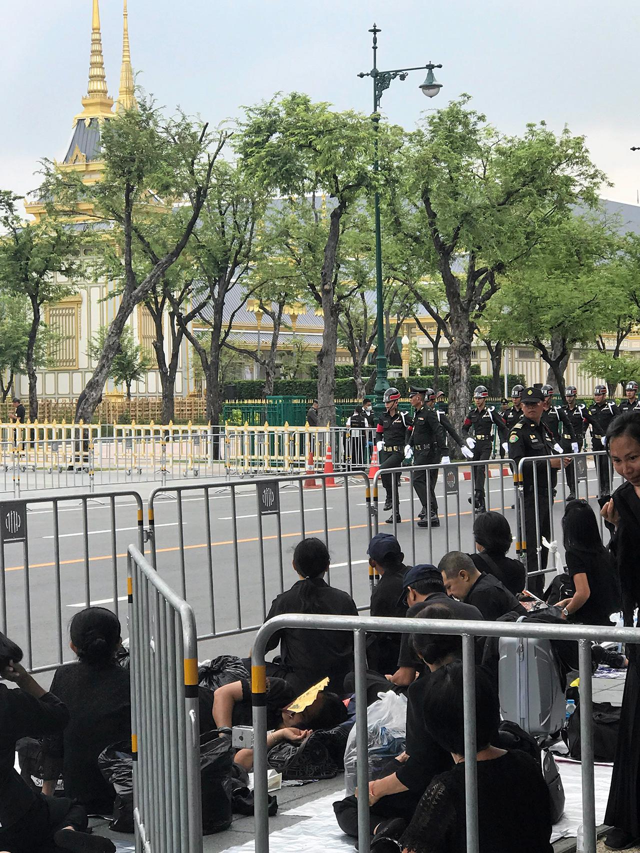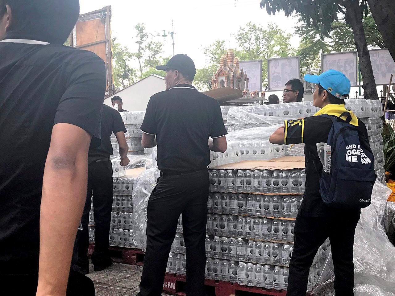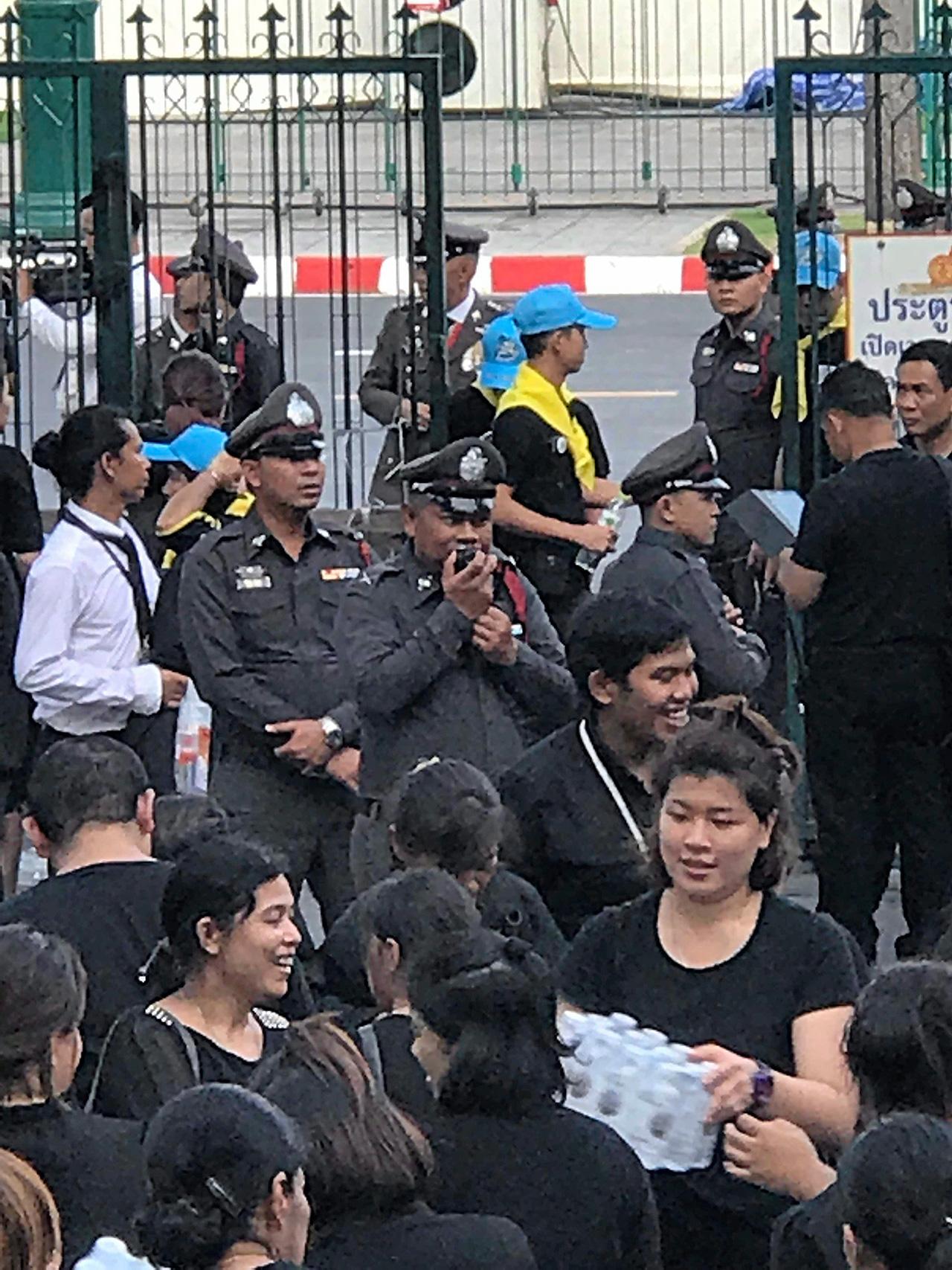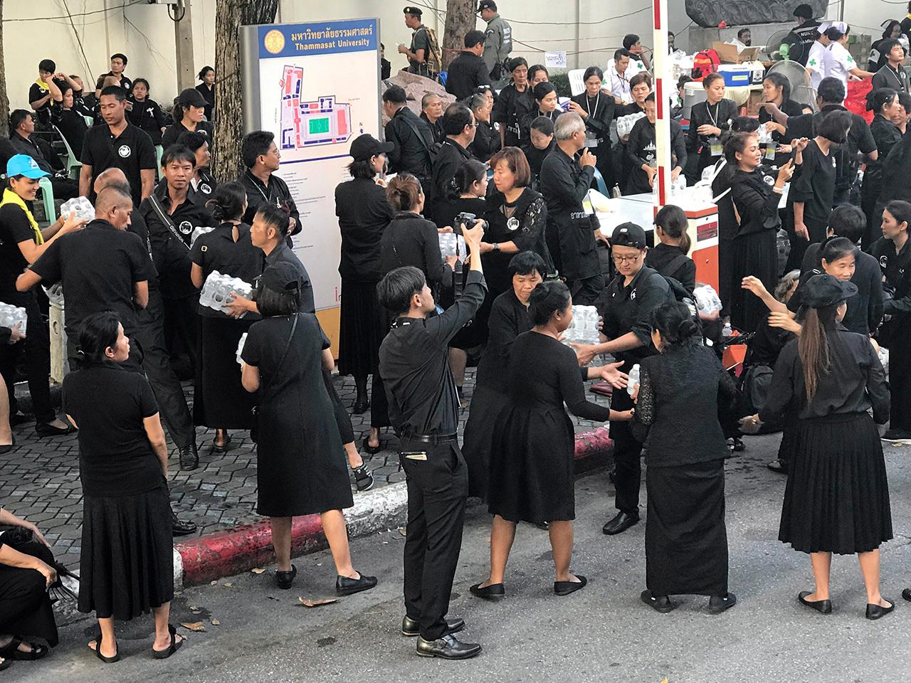 สมเด็จพระเจ้าอยู่หัว ยังทรงมีพระ ราชดำริให้แจกจ่ายอาหารแก่ประชาชนตามจุดต่างๆโดยรอบพื้นที่สนามหลวง และพระเมรุมาศ ถึงวันละกว่า 500,000 กล่อง แจกน้ำวันละเป็นล้านขวด รวมทั้งที่นอนและหน่วยแพทย์เคลื่อนที่เพื่อดูแลประชาชนจำนวนเป็นล้านคนที่เข้ามาปักหลักยังพื้นที่ชั้นในชั้นนอกหลายวัน โดยเฉพาะกลุ่มคนชราและคนพิการที่เข้ามาเฝ้ารับเสด็จเกินกว่า 48 ชั่วโมงให้ได้รับการดูแลเป็นพิเศษด้วย