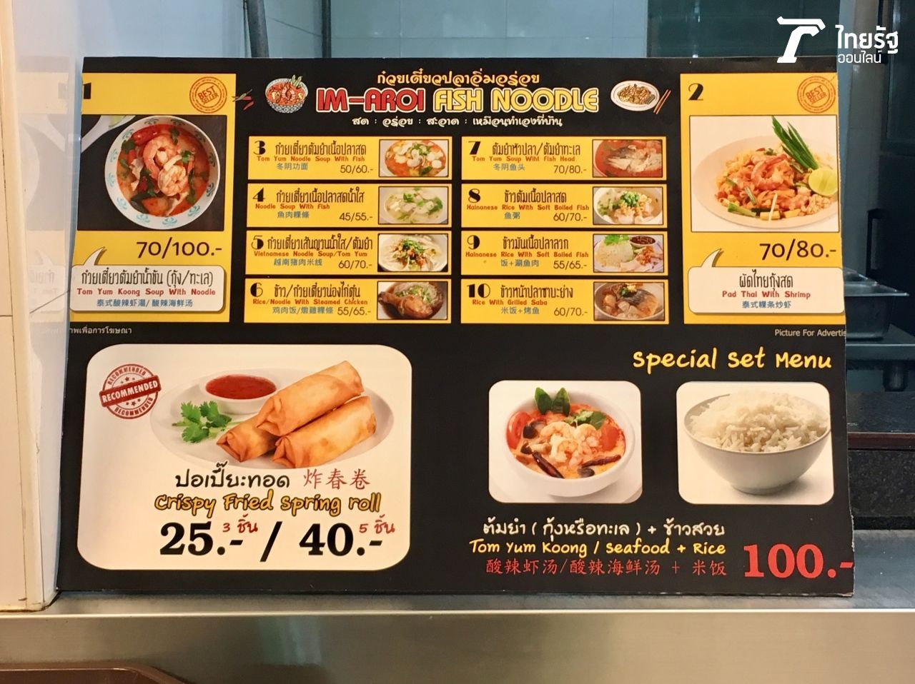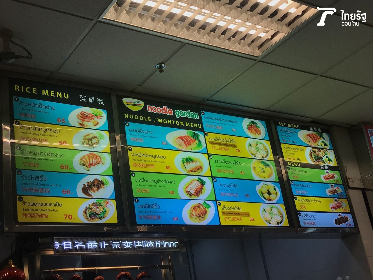 ราคาอาหารของร้านร้านหนึ่งที่ตั้งอยู่ที่ชั้น 3 ของสนามบินสุวรรณภูมิ