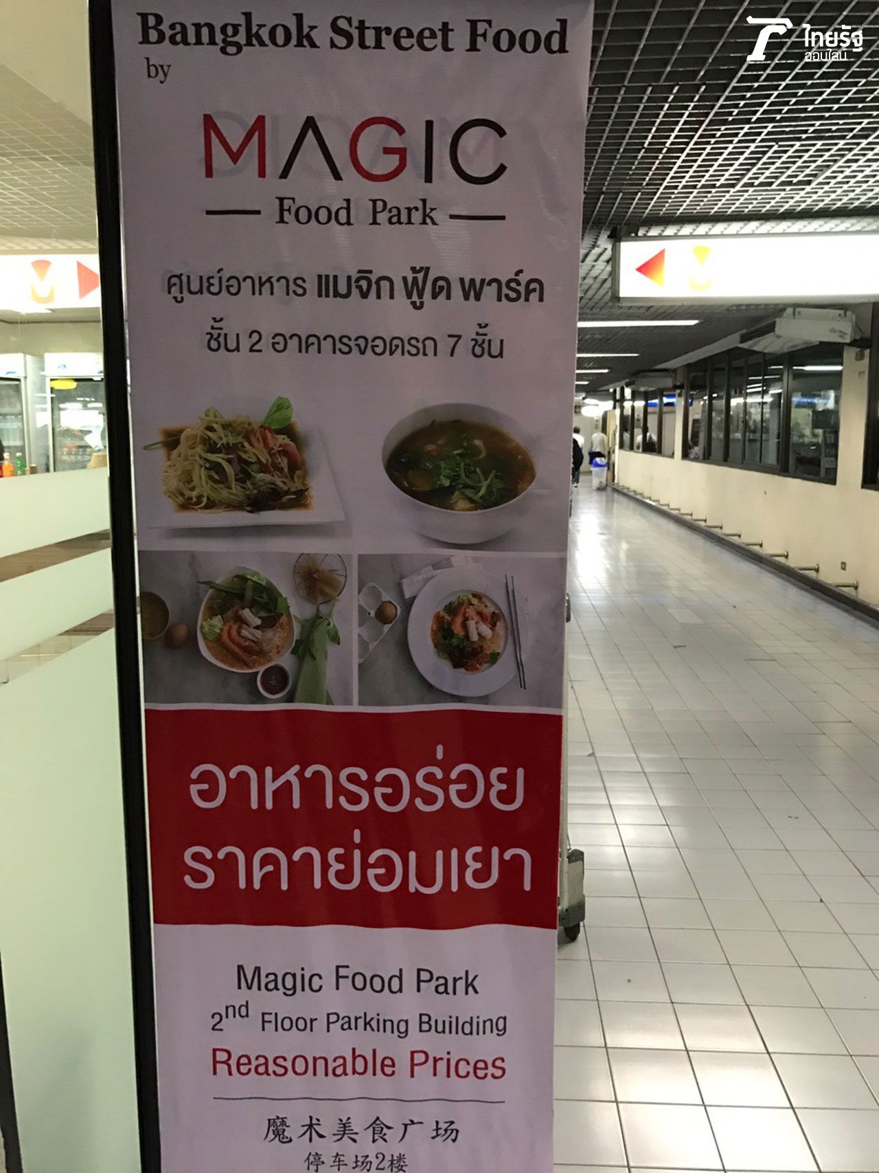 ร้านที่ว่าคือ ศูนย์อาหาร เมจิก ฟู้ด พาร์ค ตั้งอยู่บริเวณชั้น 2 ของอาคารจอดรถ 7 ชั้น ติดกับอาคารผู้โดยสารในประเทศ ภายในจะคล้ายกับฟู้ดคอร์ตห้างสรรพสินค้าทั่วไป ติดแอร์ มีพื้นที่กว้างขวาง สะอาด ถูกหลักอนามัย มีโต๊ะ เก้าอี้ ให้นั่งรับประทานอาหาร