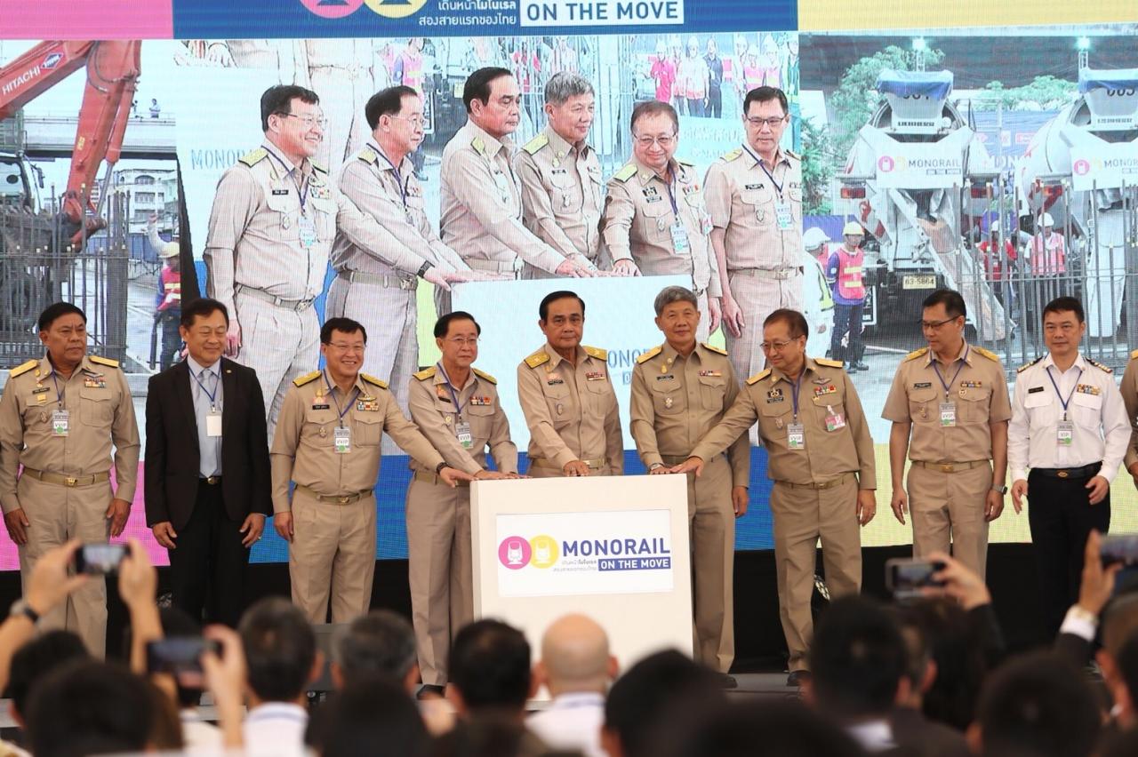 นายกรัฐมนตรีกดปุ่มเริ่มสร้างรถไฟฟ้าสายสีชมพู แคราย-มีนบุรี สายสีเหลือง ลาดพร้าว-สำโรง คาดแล้วเสร็จปี 64...