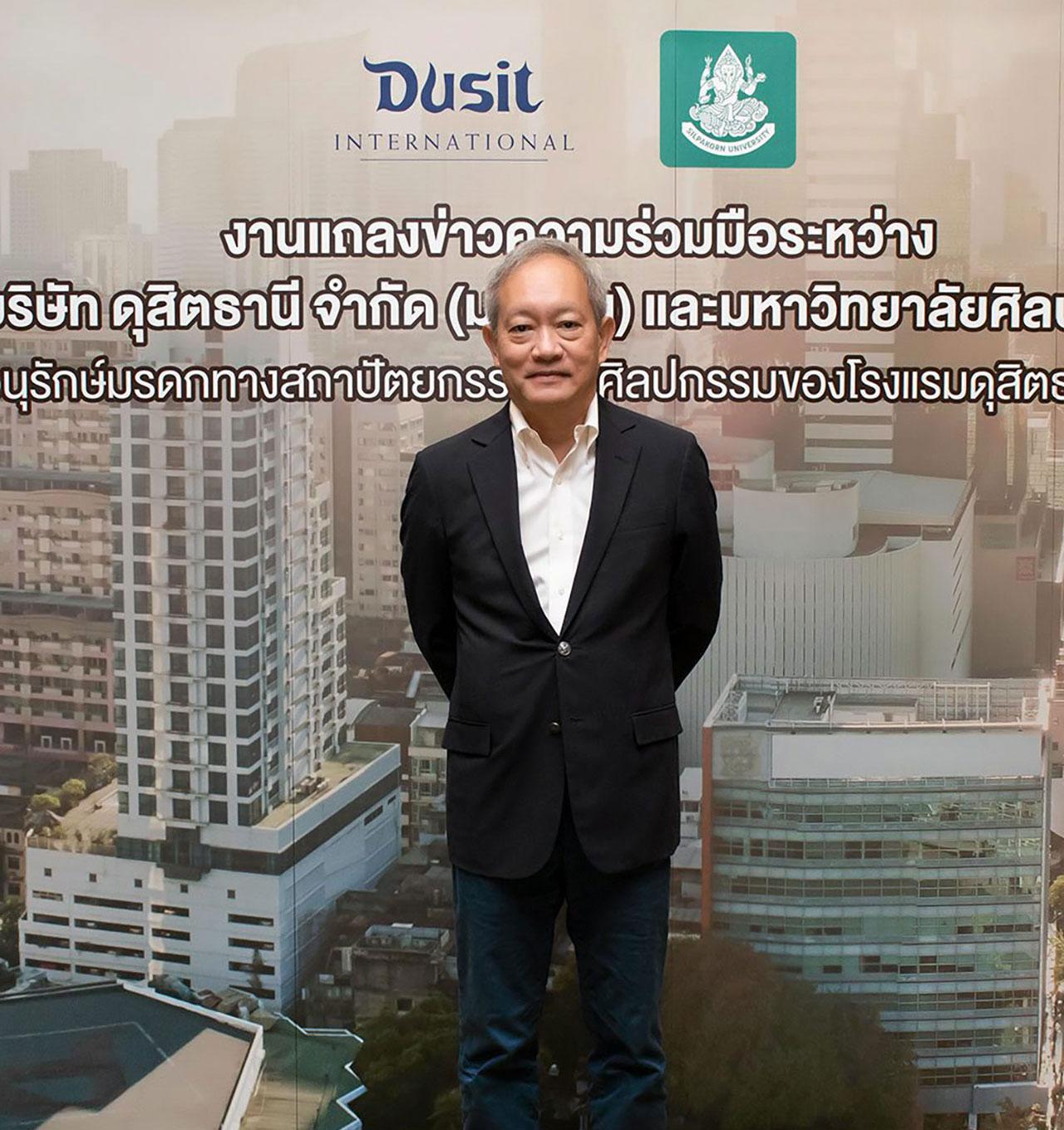 มีความสำคัญเหมือนโรงแรมดุสิตธานีในตำนาน “ดุสิตธานี” จะเป็นตัวแทนประเทศ เป็นสิ่งที่คุณแม่ตั้งโจทย์ไว้ตั้งแต่แรก เราเลยมีความร่วมมือกับมหาวิทยาลัยศิลปากรในการอนุรักษ์เอกลักษณ์ของโรงแรมดุสิตธานี ในโครงการบันทึกการเปลี่ยนผ่านหน้าประวัติศาสตร์ของโรงแรมดุสิตธานี กรุงเทพ “Preserving Dusit Thani Bangkok’s Artistic Heritage” เพื่อรักษาตำนานของสถาปัตยกรรมเก่าแก่คู่ถนนสีลม