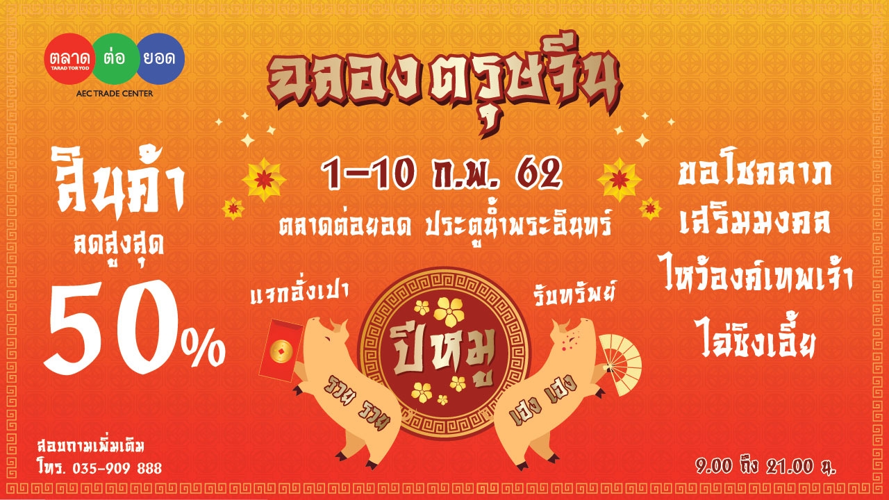 ตลาดต่อยอด ขอร่วมอวยพรให้ท่านโชคดีตลอดปี เฉลิมฉลองตรุษจีนรับปีหมูทอง พลาดไม่ได้กับสินค้าลดราคาพิเศษ ขายถูกเหมือนไปซื้อหน้าโรงงาน ทั้งเสื้อผ้าแฟชั่น อาหาร ของใช้ในบ้าน ประดับยนต์ มือถือยี่ห้อดัง คับคั่งด้วยการออกบูธจากสินค้าอุปโภคบริโภคอีกมากมาย ยกขบวนมาลดให้ช้อปกันจุใจ และเพื่อเสริมสร้างความเป็นสิริมงคลแก่ตัวเองและครอบครัว เชิญทุกท่านร่วมสักการะองค์เทพเจ้าไฉ่ซิงเอี้ย เทพเจ้าแห่งโชคลาภและความมั่งคั่งร่ำรวย ไหว้บูชาขอพรเพื่อเสริมมงคล เฮงๆ รวยๆ กันถ้วนหน้า ไฮไลต์ของงานยังไม่หมดเท่านี้ เพราะเรายังมีอั่งเปามาแจกอย่างไม่อั้นแก่ผู้โชคดี พร้อมด้วยกิจกรรมสนุกอีกเพียบ