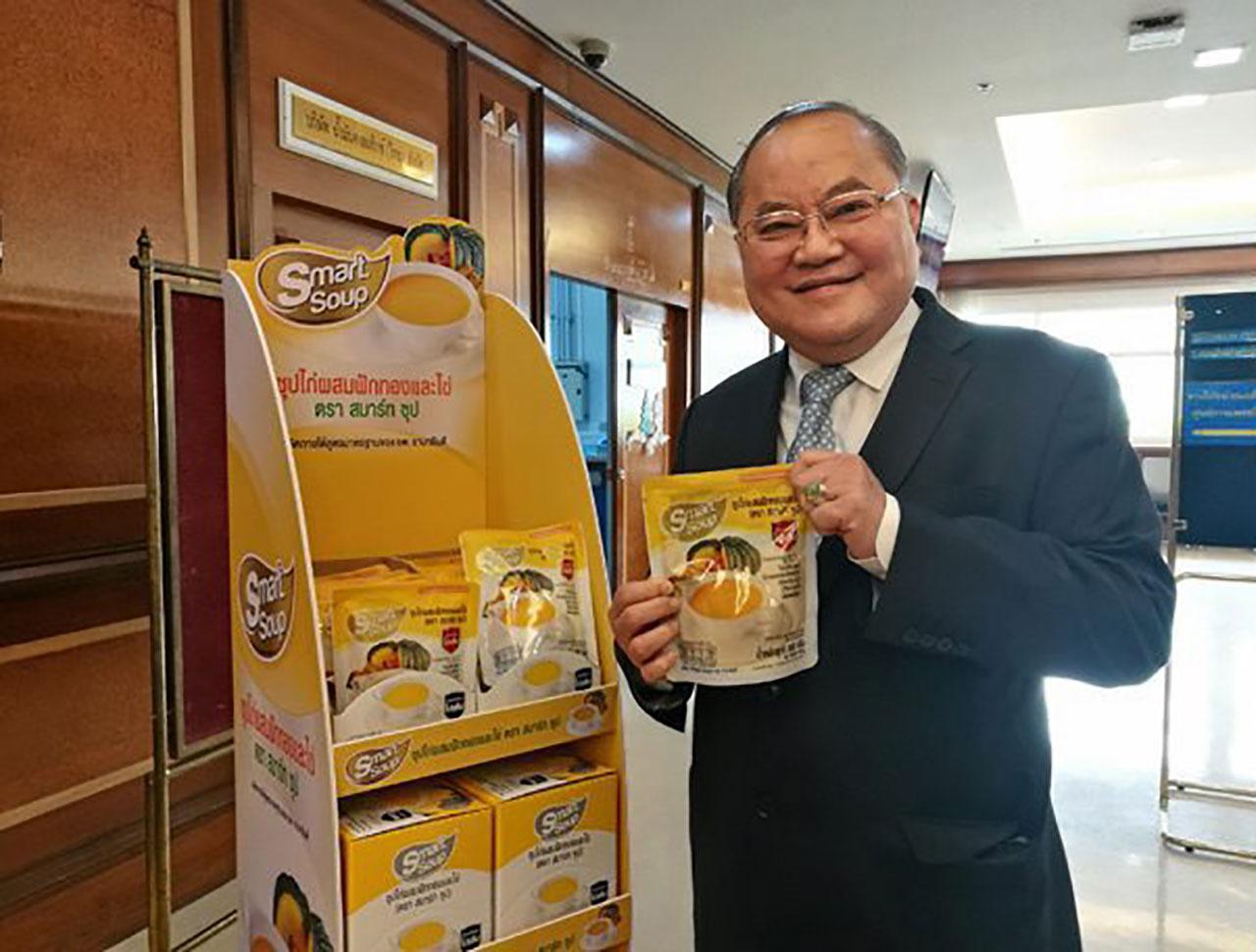 ศ.นพ.ปิยะมิตร ศรีธรา คณบดีคณะแพทยศาสตร์ มหิดล ร่วมกับนายสุขวัฒน์ ด่านเสริมสุข CEO ธุรกิจอาหาร บมจ.ซีพีเอฟ พัฒนานวัตกรรมผลิตอาหารปลอดภัยเพื่อผู้ป่วย “เราทดลองใช้กับผู้ป่วย จนพบว่ามีสุขภาพแข็งแรงขึ้นเป็นที่พอใจ จึงเริ่มนำอาหารเหลว อย่าง ซุปไก่ผสมฟักทอง-ไข่ ตรา “สมาร์ทซุป” ที่คิดค้นร่วมกันกับซีพีเอฟมาวางขายที่ รพ.รามาฯ ทำให้สะดวกและโหลดใส่สายยางได้ทันที แถมเก็บได้นาน 12 เดือนในอุณหภูมิปกติด้วย.