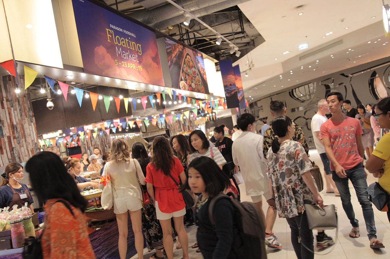 ชุติเดช ผู้เจริญทั่ว ผู้อำนวยการใหญ่บริหารสินค้าซูเปอร์มาร์เก็ต (FOOD) บริษัท เดอะมอลล์ กรุ๊ป จำกัด กล่าวว่า “ตลาดน้ำ” เรียกว่าเป็นสัญลักษณ์ของความเจริญรุ่งเรืองของชุมชนในสมัยก่อน ที่สะท้อนถึงวิถีชีวิต วัฒนธรรมการกิน อยู่ ของคนริมน้ำในแต่ละชุมชน ซึ่งในปัจจุบันมีตลาดน้ำเกิดขึ้นจำนวนมาก ที่เปิดให้คนที่รักการช้อป การชิม และท่องเที่ยวที่เป็นเอกลักษณ์ไม่เหมือนใคร ได้ไปสัมผัส กลายเป็นหนึ่งแลนด์มาร์กของสถานที่ท่องเที่ยวที่หลายคนชื่นชอบ และอยากจะไปสัมผัสถึงวิถีชีวิตความเป็นไทย เพื่อต้อนรับเทศกาลปีใหม่ไทย พารากอน ฟู้ดฮอลล์ ศูนย์รวมอาหาร และไลฟ์สไตล์ใจกลางกรุงเทพฯ จึงได้เนรมิต พื้นที่มาร์เก็ตฮอลล์ ชั้น G พารากอน ดีพาร์ทเม้นท์สโตร์ จำลองบรรยากาศตลาดน้ำชื่อดังในย่านต่างๆ ให้ลูกค้าได้สัมผัสถึงวิถีความเป็นไทย นอกจากนี้ยังได้รวบรวมเมนูเด็ด ทั้งคาว หวาน ของฝาก รวมทั้งผลิตภัณฑ์ หัตถกรรมต่างๆ หลากหลายรายการที่ขึ้นชื่อ และเป็นเอกลักษณ์ของแต่ละตลาดน้ำในย่านต่างๆ มาให้ได้สัมผัส และลิ้มรสความอร่อยในบรรยากาศแบบตลาดน้ำ ทั้งตลาดน้ำอัมพวา, ตลาดดอนหวาย, ตลาดน้ำคลองลัดมะยม, ตลาดน้ำพันท้ายนรสิงห์ และร้านชื่อดังอีกมากมาย ยกขบวนมาให้ลูกค้าชาวไทย และต่างชาติ ได้ช้อป ชิม และซื้อเป็นของฝากในช่วงเทศกาลสงกรานต์นี้