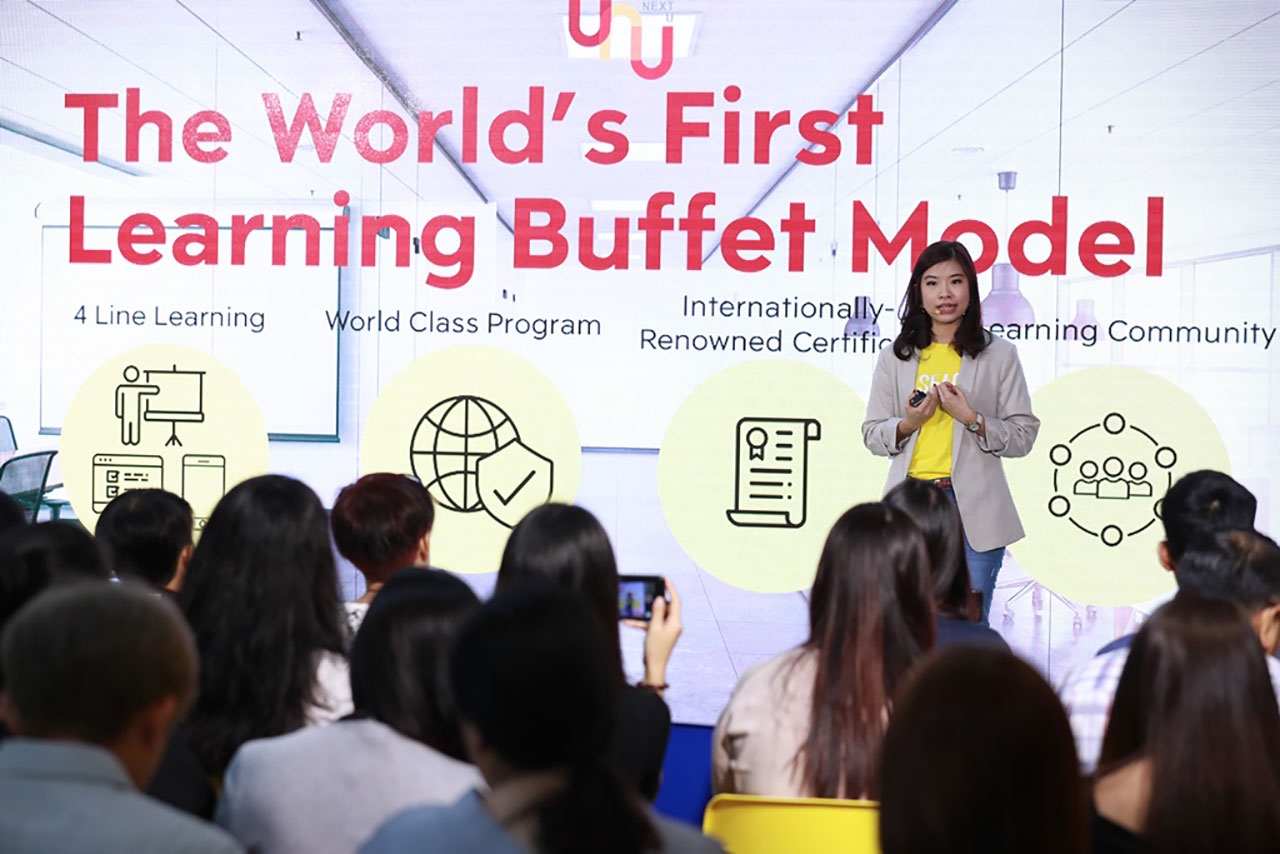 ‘YourNextU’ นวัตกรรมดีไซน์ที่เกิดขึ้นเพื่อดิสรัปการศึกษาครั้งแรกของโลก ด้วยจุดต่างในการเป็น World-Class Education Service กับโมเดลการเรียนรู้แบบ Learning Buffet Model เรียนแบบไม่สิ้นสุด เรียนซ้ำได้อย่างไม่จำกัดกับคลาส และโปรแกรมระดับโลกกว่า 300 หลักสูตร ผสมผสานรูปแบบการเรียนรู้ทั้ง 1. Classroom การเข้าคลาสเพื่ออบรมในห้องเรียนกับผู้เชี่ยวชาญเฉพาะด้านในหลักสูตรต่างๆ 2. Social Learning การเรียนรู้ในรูปแบบแลกเปลี่ยนประสบการณ์ ข้อมูล หรือเรื่องราวจากผู้ที่มีความเชี่ยวชาญเฉพาะด้านการเรียน วิทยากร นักธุรกิจที่ประสบความสำเร็จ หรือผู้นำทางความคิด ผ่านกิจกรรมพิเศษที่หลากหลายรูปแบบ เพื่อสร้างสังคมการเรียนรู้ที่มีคุณภาพ 3. Online เรียนรู้เนื้อหาผ่านโปรแกรมการเรียนรู้ออนไลน์ที่คัดกรองและคัดสรรมาแล้วว่าดีที่สุด มาตรฐานระดับสากล พร้อม Subtitles ซึ่งผู้เรียนสามารถเลือกเวลา และสถานที่ที่ผู้เรียนสะดวกได้ 4. Library คลังความรู้ที่ผู้เรียนสามารถดาวน์โหลดได้อย่างไม่จำกัดออกมาเป็น “คัมภีร์พิชิตความสำเร็จ” เพื่อปฏิบัติตามได้ทันที และเพื่อการเรียนรู้อย่างต่อเนื่อง