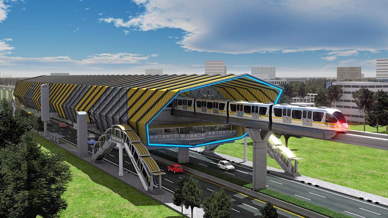 โครงการรถไฟฟ้าสายสีเหลือง ช่วงลาดพร้าว-สำโรง ระยะทาง 30.4 กิโลเมตร มีสถานีรถไฟฟ้า 23 สถานี โดยเป็นระบบรถไฟฟ้ารางเดี่ยวโมโนเรลแบบยกระดับเช่นเดียวกับสายสีชมพู ต้นทางเชื่อมต่อกับรถไฟฟ้าใต้ดินเอ็มอาร์ทีลาดพร้าว ไปตามถนนลาดพร้าว เลี้ยวเข้าศรีนครินทร์ และไปสิ้นสุดที่สำโรง สมุทรปราการ