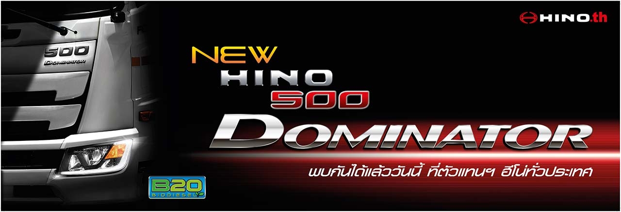 ➢ รถบรรทุก ฮีโน่ 500 Dominator รถบรรทุก 6 ล้อ ขนาดกลาง มาพร้อมกับเครื่องยนต์ขนาด 155 แรงม้า / 175 แรงม้า และ 210 แรงม้า บรรทุกได้สูงสุด 10.5 ตัน ด้วยรูปโฉมใหม่ ทันสมัยทั้งภายในและภายนอก โดยภายนอกเปลี่ยนโฉมใหม่พร้อมไฟเดย์ไลท์ ที่ช่วยทั้งความสวยงาม และความปลอดภัยในการขับขี่ และรองรับการต่อตัวถังประเภทต่างๆ ด้วยขนาดแชสซี 3 ขนาด คือ 4.2 , 5.6 และ 6.6 ตามลำดับ ส่วนภายในเปลี่ยนรูปแบบเป็นสไตส์สปอร์ต ทูโทน พร้อมมาตรวัดแบบดิจิตอล ที่แจ้งเตือนรายละเอียดต่างๆ ที่สำคัญครบถ้วน