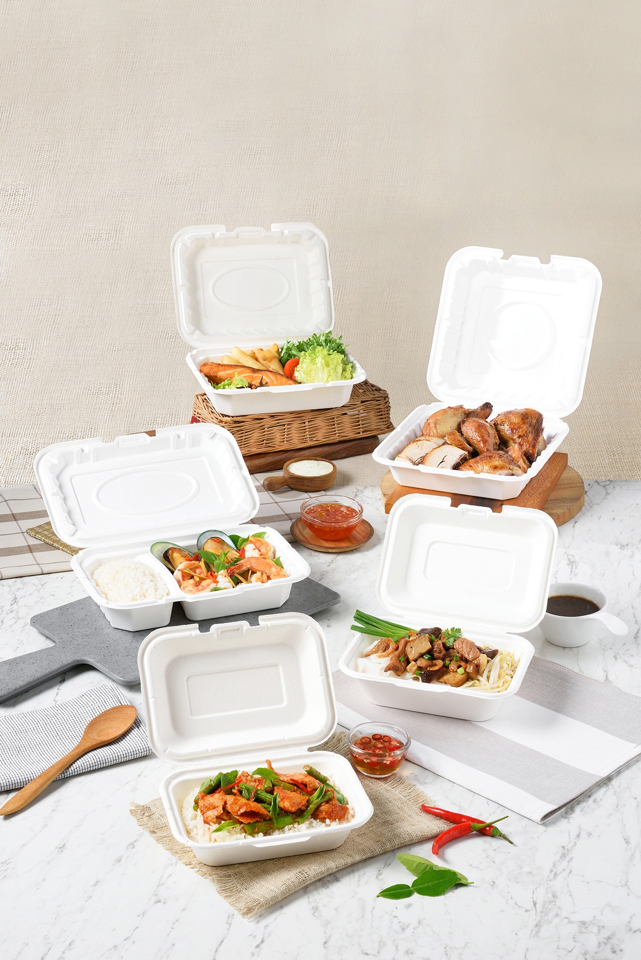 บรรจุภัณฑ์เฟสท์ ไบโอ สามารถบรรจุอาหารได้โดยตรง ทั้งอาหารที่มีน้ำและน้ำมันได้นาน 3-4 ชั่วโมงโดยไม่รั่ว มีความพรีเมียมด้วยผิวสีขาว เนียนเรียบ ทั้งยังมีดีไซน์ที่หลากหลายอย่างการออกแบบให้มีช่องแบ่งอาหารในตัว ซึ่งน่าจะถูกใจทั้งผู้ประกอบการร้านอาหารที่ต้องการแบ่งอาหารให้เป็นสัดส่วน และผู้บริโภคที่ต้องการทานอาหารแบบเซตเมนูที่มีกับข้าวหลากหลายในหนึ่งกล่อง นอกจากนี้เฟสท์ ไบโอ ยังสะดวกในการอุ่นร้อน เพราะสามารถนำเข้าไมโครเวฟและเตาอบได้* และสำคัญที่สุดคือบรรจุภัณฑ์เฟสท์ ไบโอ สามารถย่อยสลายได้ภายใน 60 วัน