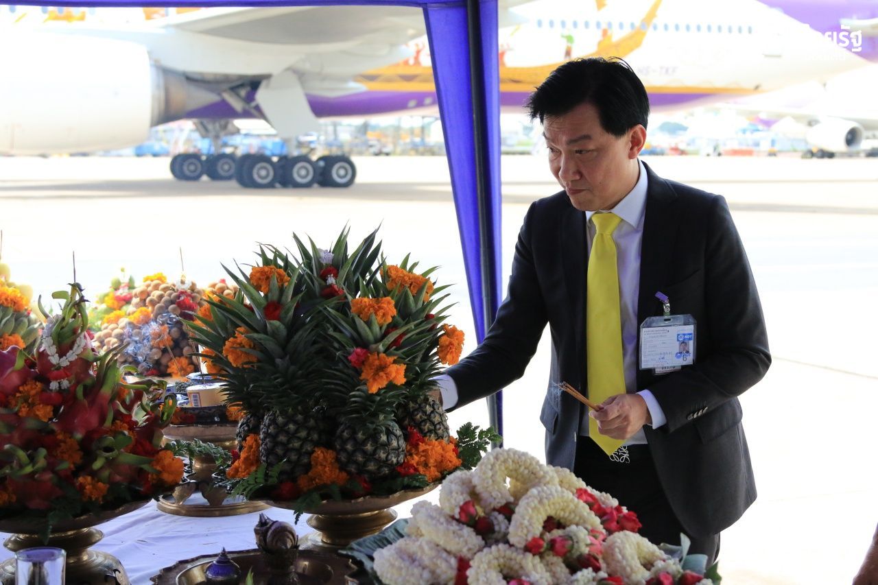 เมื่อวันที่ 16 สิงหาคม 2562 นายสุเมธ ดำรงชัยธรรม กรรมการผู้อำนวยการใหญ่ บริษัท การบินไทย จำกัด (มหาชน) เป็นประธานในพิธีบวงสรวงภาพวาดแบบเรือพระที่นั่งสุพรรณหงส์บนเครื่องบิน เนื่องในโอกาสมหามงคลพระราชพิธีบรมราชาภิเษก พุทธศักราช 2562 โดยพระมหาราชครูพิธีศรีวิสุทธิคุณ ประกอบพิธีบวงสรวง พร้อมด้วยฝ่ายบริหาร และพนักงาน ร่วมในพิธี ณ โรงซ่อมอากาศยานฝ่ายช่าง การบินไทย ดอนเมือง ถนนวิภาวดีรังสิต