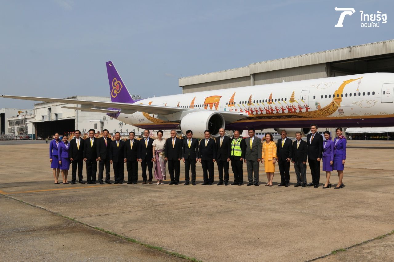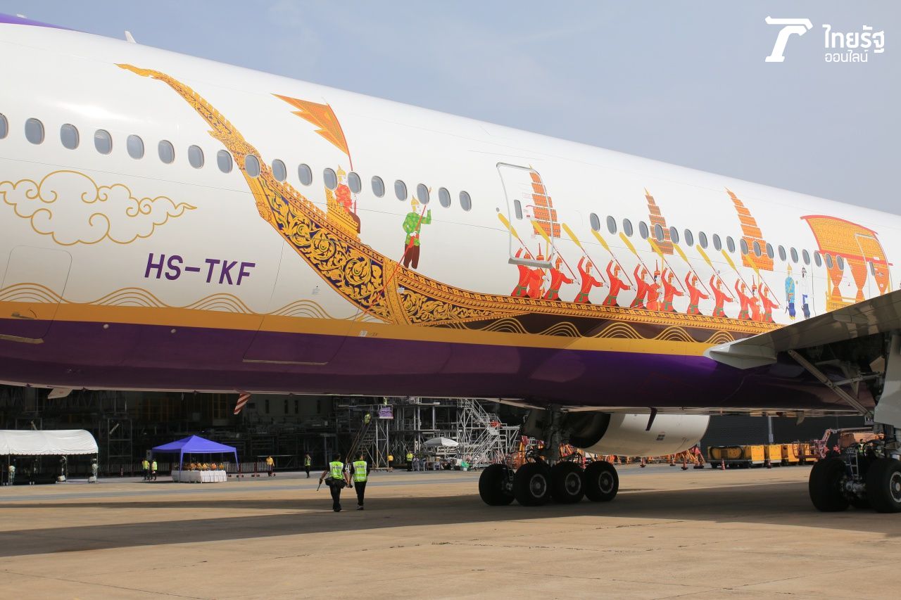 นับเป็นความสิริมงคลที่บริษัท การบินไทยฯ ได้มีโอกาสเชิญภาพวาดแบบเรือพระที่นั่งประดับบนเครื่องบินอีกครั้ง หลังจากปี พ.ศ.2542 ที่บริษัทฯ ได้ประดับภาพวาดลายดังกล่าวบนเครื่องบินแบบโบอิ้ง 747-400 นามพระราชทาน "หริภุญชัย" เพื่อร่วมฉลองในโอกาสมหามงคลเฉลิมพระชนมพรรษา 6 รอบของพระบาทสมเด็จพระเจ้าอยู่หัว รัชกาลที่ 9 ยังความรำลึกในพระมหากรุณาธิคุณอย่างหาที่สุดมิได้