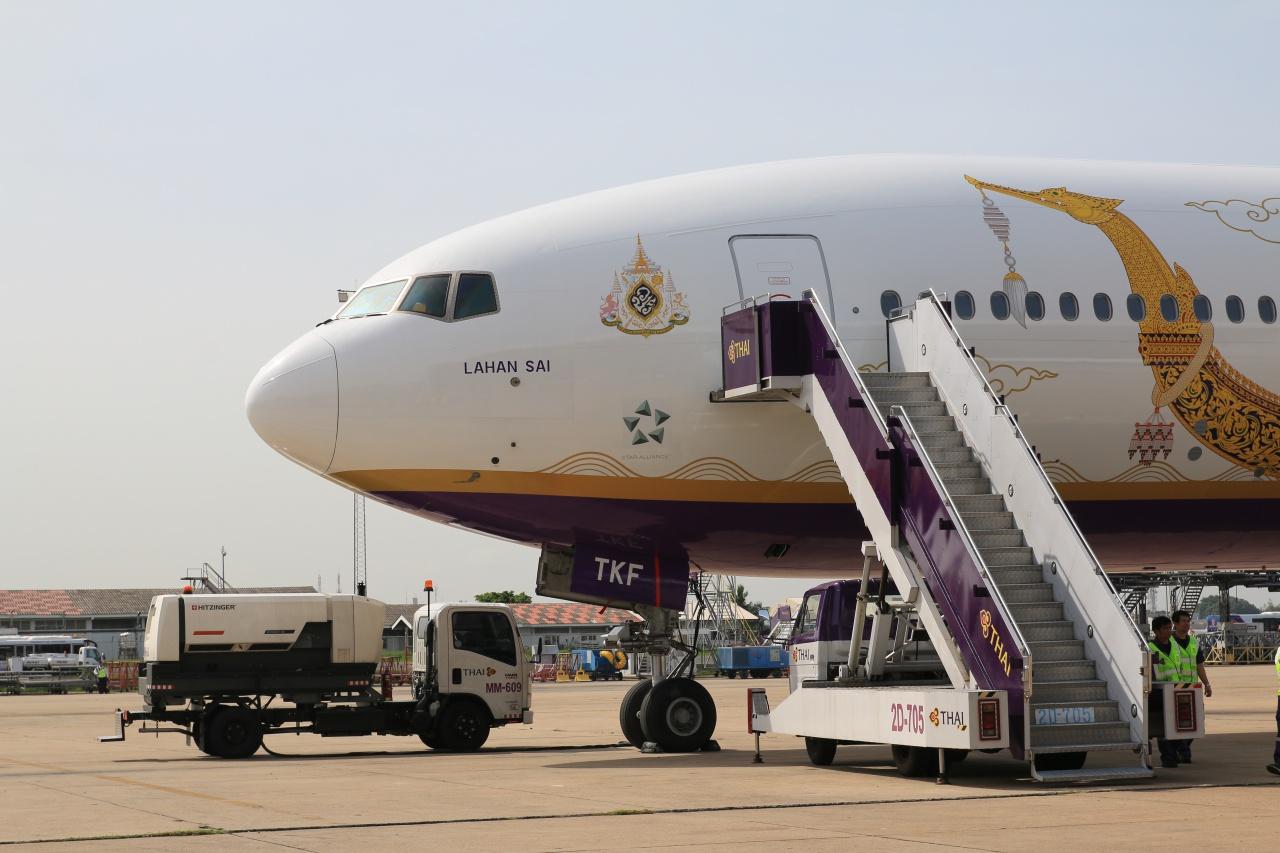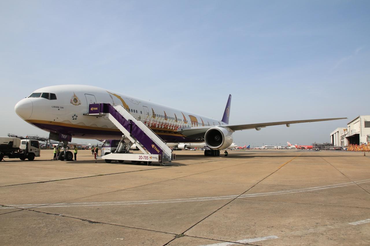 สำหรับ เครื่องบินโบอิ้ง 777-300 นามพระราชทาน “ละหานทราย” เป็น 1 ใน 6 ลำที่มีประจำการในฝูงบิน มีจำนวนที่นั่ง 364 ที่นั่ง เป็นชั้นธุรกิจ 34 ที่นั่ง และชั้นประหยัด 330 ที่นั่ง โดยจะนำมาให้บริการในเส้นทางไป-กลับกรุงเทพฯ-โซล/ไทเป/ปักกิ่ง/สิงคโปร์/กัวลาลัมเปอร์ และซัปโปโร เพื่อเผยแพร่ความงดงามของศิลปวัฒนธรรมไทยผ่านภาพวาดเรือพระที่นั่งสุพรรณหงส์บนเครื่องบินของสายการบินแห่งชาติไปสู่สายตาประชาชนทั่วโลก.