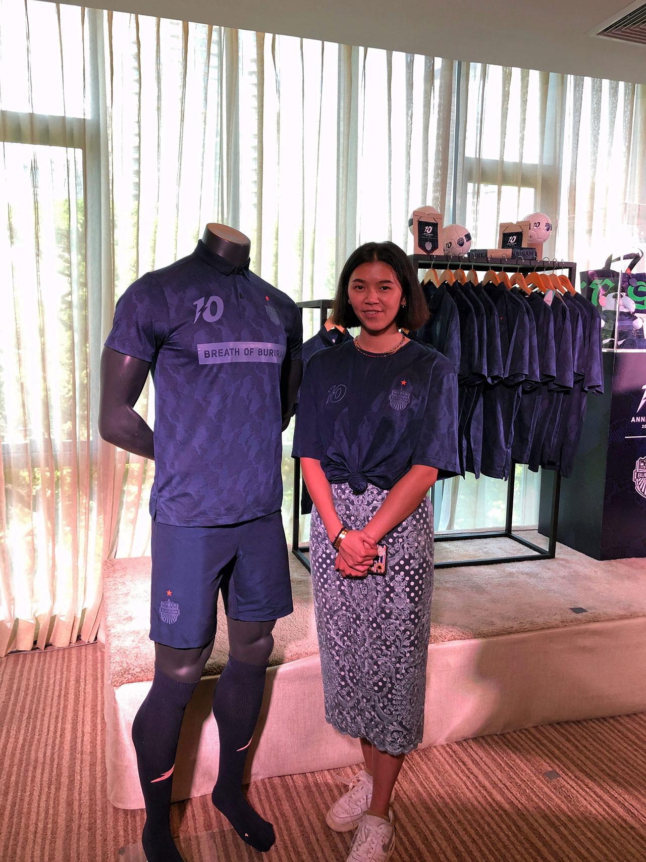 น.ส.ชิดชนก ชิดชอบ ผู้อำนวยการฝ่ายสินค้าที่ระลึกสโมสรบุรีรัมย์ ยูไนเต็ด กล่าวว่า ในส่วนของการพัฒนาเสื้อจากขวดพลาสติกนั้น ทางสโมสรได้ร่วมพัฒนากับบริษัท นันยางการทออุตสาหกรรม จำกัด ผู้พัฒนาเทคโนโลยีผ้า Syntrel (เท็กซ์ไทล์) และเป็นผู้ผลิตเสื้อให้สโมสรมาโดยตลอด โดยเสื้อที่ผลิตนั้นเป็นการนำขวดน้ำ PET แบรนด์ “ช้าง” ผู้สนับสนุนหลักสโมสร จำนวน 17 ขวดมาผลิตเป็นเสื้อฟุตบอล