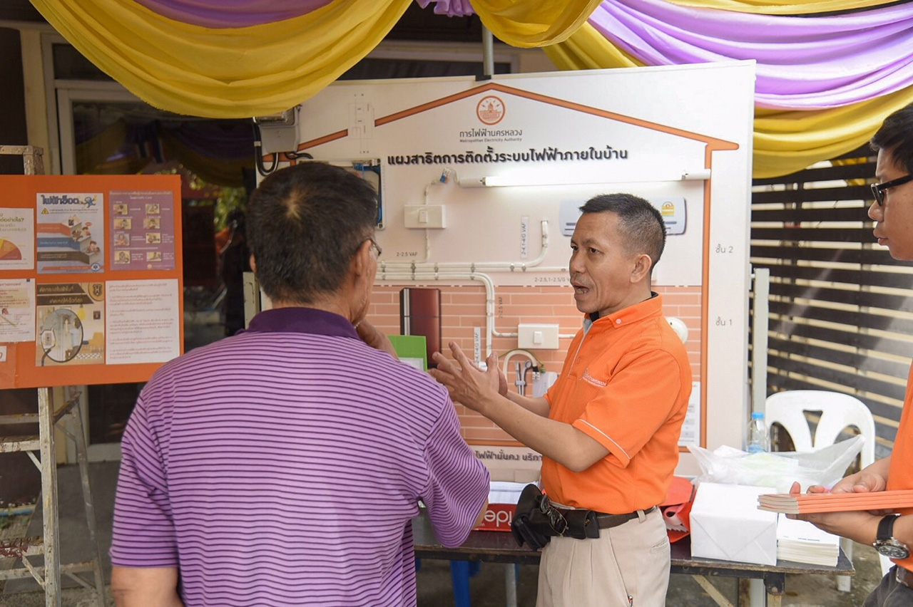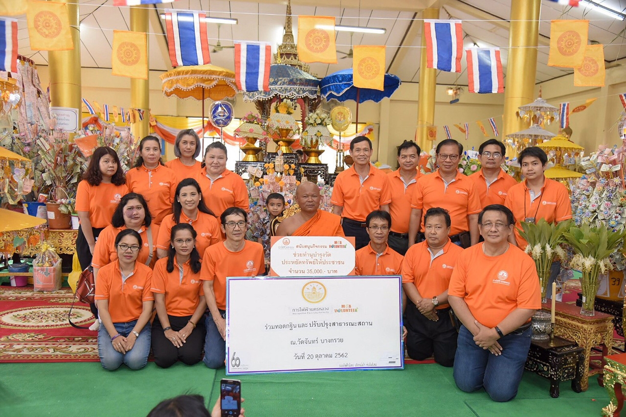 นายโสพัส สังขกรมานิต ผู้อำนวยการไฟฟ้าเขตสามเสน การไฟฟ้านครหลวง (MEA) เป็นประธานในการส่งมอบงานปรับปรุงระบบไฟฟ้า พร้อมเปิดบูธให้ความรู้เรื่องความปลอดภัยในการใช้ไฟฟ้าอย่างมีประสิทธิภาพและปลอดภัย ณ วัดจันทร์ อ.บางกรวย จ.นนทบุรี ภายใต้กิจกรรม “ทำนุบำรุงวัด ประหยัดทรัพย์ให้ประชาชน” ซึ่งเป็นหนึ่งในโครงการ MEA Volunteer ที่จัดขึ้นเพื่อเปิดโอกาสให้พนักงานมีส่วนร่วมในการทำความดีช่วยเหลือและพัฒนาสังคมในด้านต่างๆ ซึ่งในครั้งนี้ พนักงานอาสา MEA ได้ลงพื้นที่ปรับปรุงระบบไฟฟ้าภายในวัดจันทร์ อ.บางกรวย จ.นนทบุรี โดยดำเนินการจัดหาและติดตั้งอุปกรณ์ไฟฟ้าใหม่ทดแทนอุปกรณ์เดิมที่ชำรุดเพื่อความปลอดภัย ได้แก่ ชุดเมนสวิตช์ เต้ารับชนิด 3 ขา (มีสายดิน) อุปกรณ์ตัดตอนไฟฟ้า รวมถึงเปลี่ยนพัดลมเพดานที่ชำรุดทั่วทั้งวัด พร้อมตรวจสอบระบบไฟฟ้า ติดตั้งสายดินป้องกันไฟฟ้ารั่วภายในอาคารโรงครัวและศาลาสวดพระอภิธรรม และเปลี่ยนไฟส่องสว่างทั้งหมดเป็นหลอดไฟ LED เพื่อช่วยลดค่าใช้จ่ายในวัด โดยกิจกรรมทั้งหมดได้ดำเนินการในวันเสาร์-อาทิตย์ ตลอดเดือนสิงหาคม-ตุลาคม 2562
