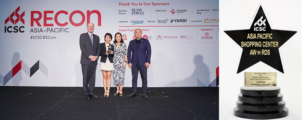 วันนี้ ‘ไอคอนสยาม’ อภิมหาโครงการเมืองแห่งการใช้ชีวิตสู่โลกอนาคต สัญลักษณ์แห่งความรุ่งโรจน์ของไทยริมฝั่งแม่น้ำเจ้าพระยา ซึ่งเปิดต้อนรับผู้คนจากทั่วทั้งประเทศไทยและทั่วโลกตั้งแต่เดือนพฤศจิกายน 2561 ที่ผ่านมา ประกาศว่า เมื่อเร็วๆ นี้ ไอคอนสยามได้รับคัดเลือกให้รับรางวัลชนะเลิศ จำนวน 4 รางวัล จากทั้งหมด 12 รางวัล (12 สาขา) ในงานเอเชียแปซิฟิกอวอร์ดซึ่งจัดขึ้นที่ประเทศสิงคโปร์ โดยสมาคมศูนย์การค้าโลก หรือ International Council of Shopping Centers’ (ICSC) Asia Pacific Awards เป็นการสร้างประวัติศาสตร์หน้าใหม่บนเวทีอันทรงเกียรติแห่งนี้ ที่โครงการใหม่โครงการเดียวได้รับรางวัลชนะเลิศเป็นจำนวนรางวัลมากที่สุดในคราวเดียว
