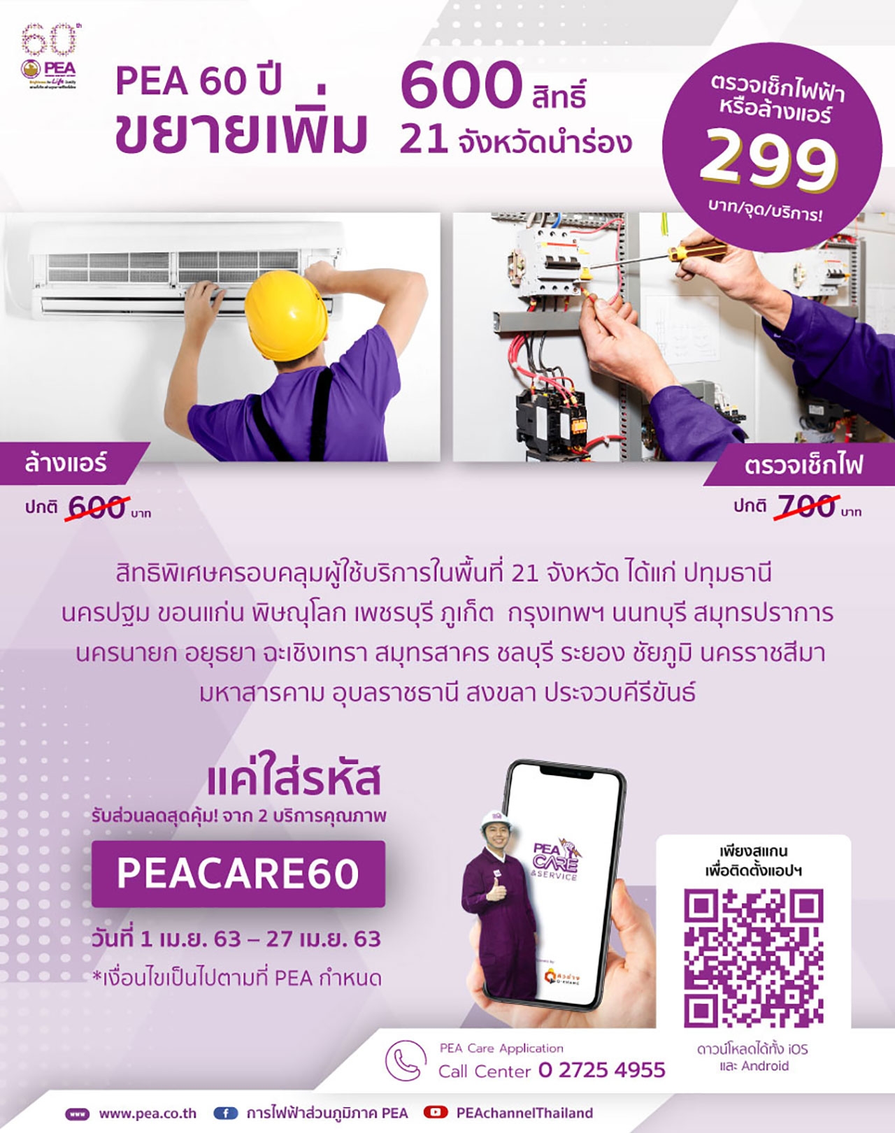 แล้วใส่รหัส PEACARE60 รับส่วนลดสุดคุ้ม! จาก 2 บริการคุณภาพ