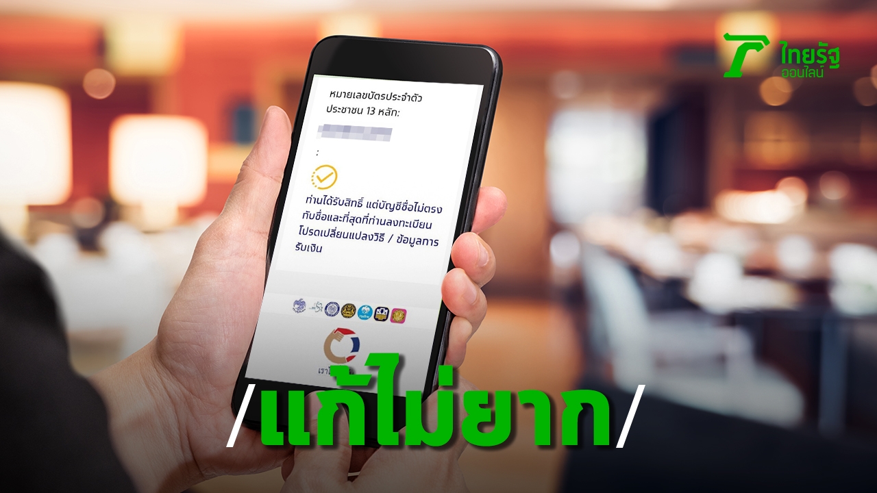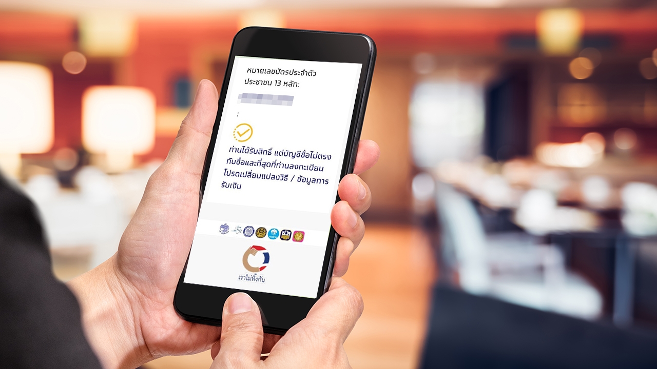 ลงทะเบียนเราไม่ทิ้งกัน ตรวจสอบสถานะรับเงินเยียายา 5,000 บาท ได้ข้อความแจ้ง "ได้รับสิทธิ แต่เชื่อบัญชีไม่ถูกต้อง" มีวิธีแก้ไข ทำตามขั้นตอนได้เลย
